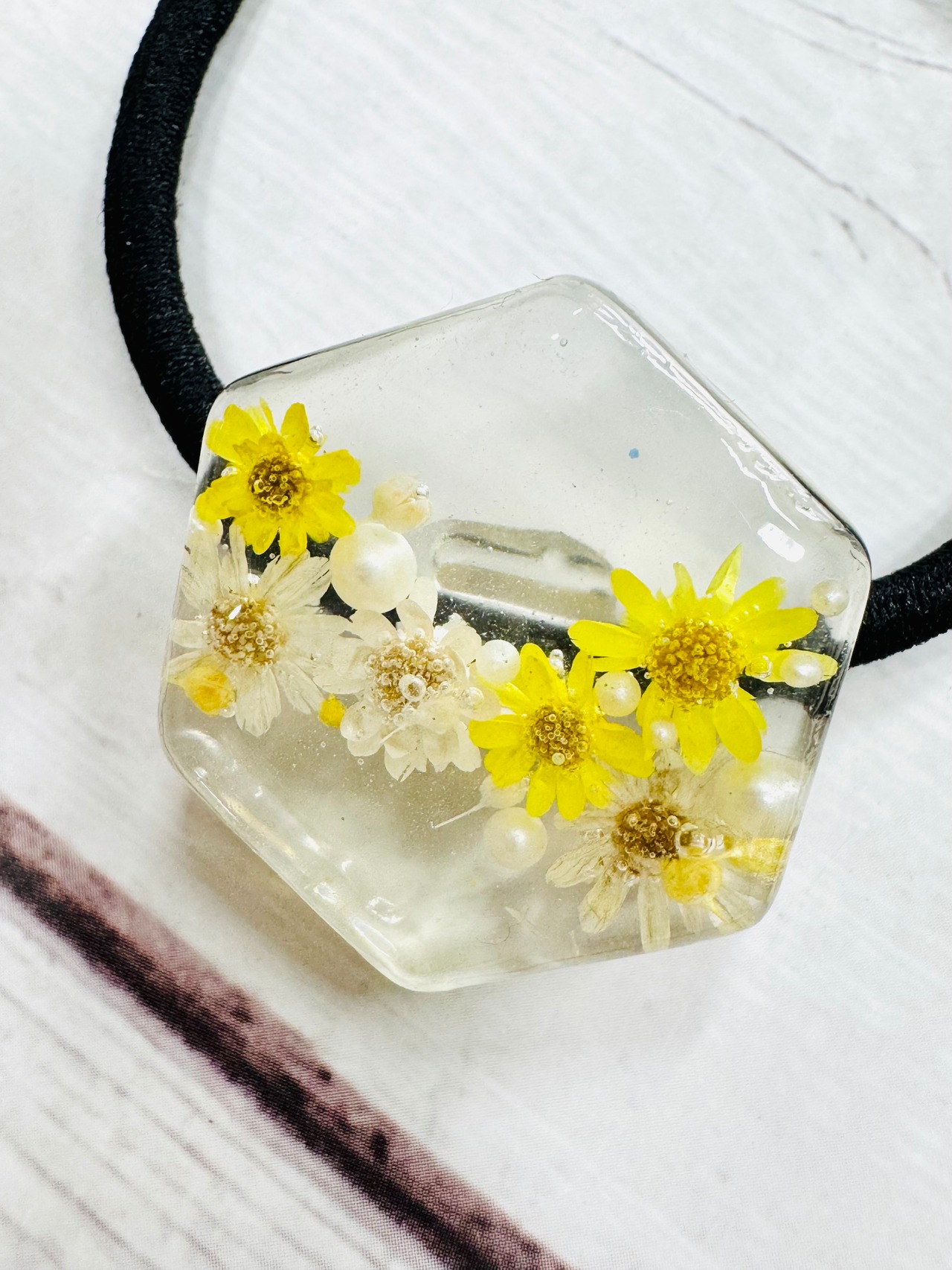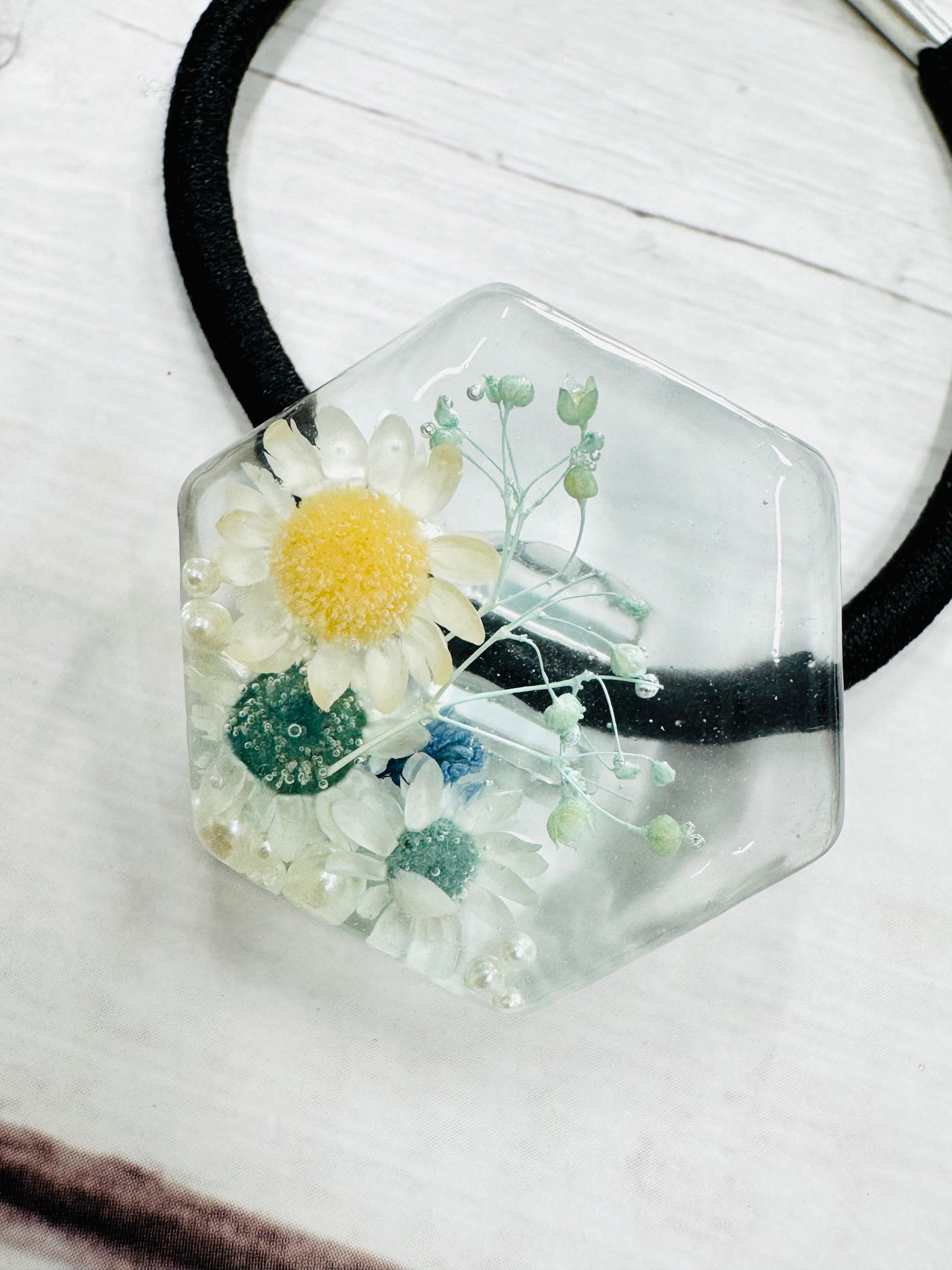 レジンとお花のヘアゴム