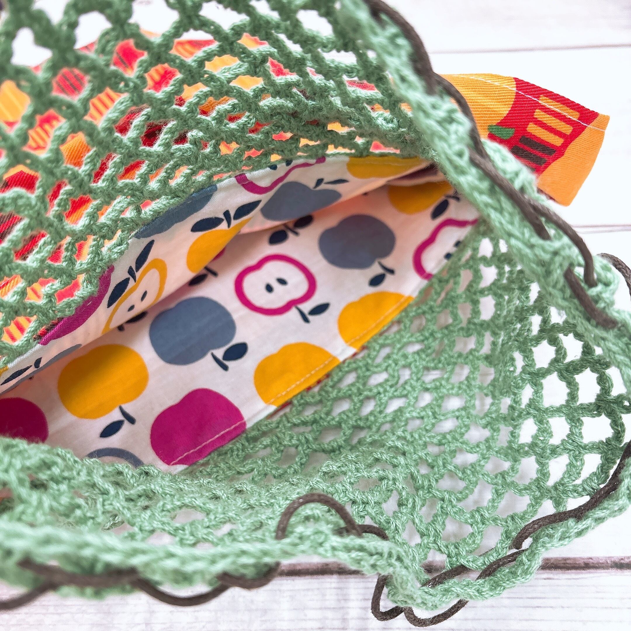 巾着部分はネット編みになっています