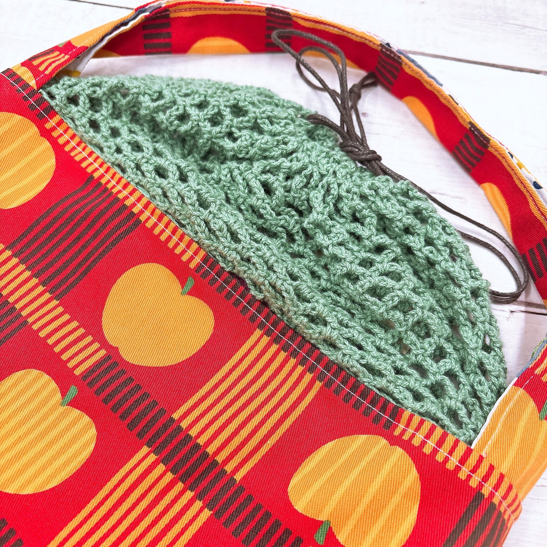 りんごの柄が可愛い巾着バッグ