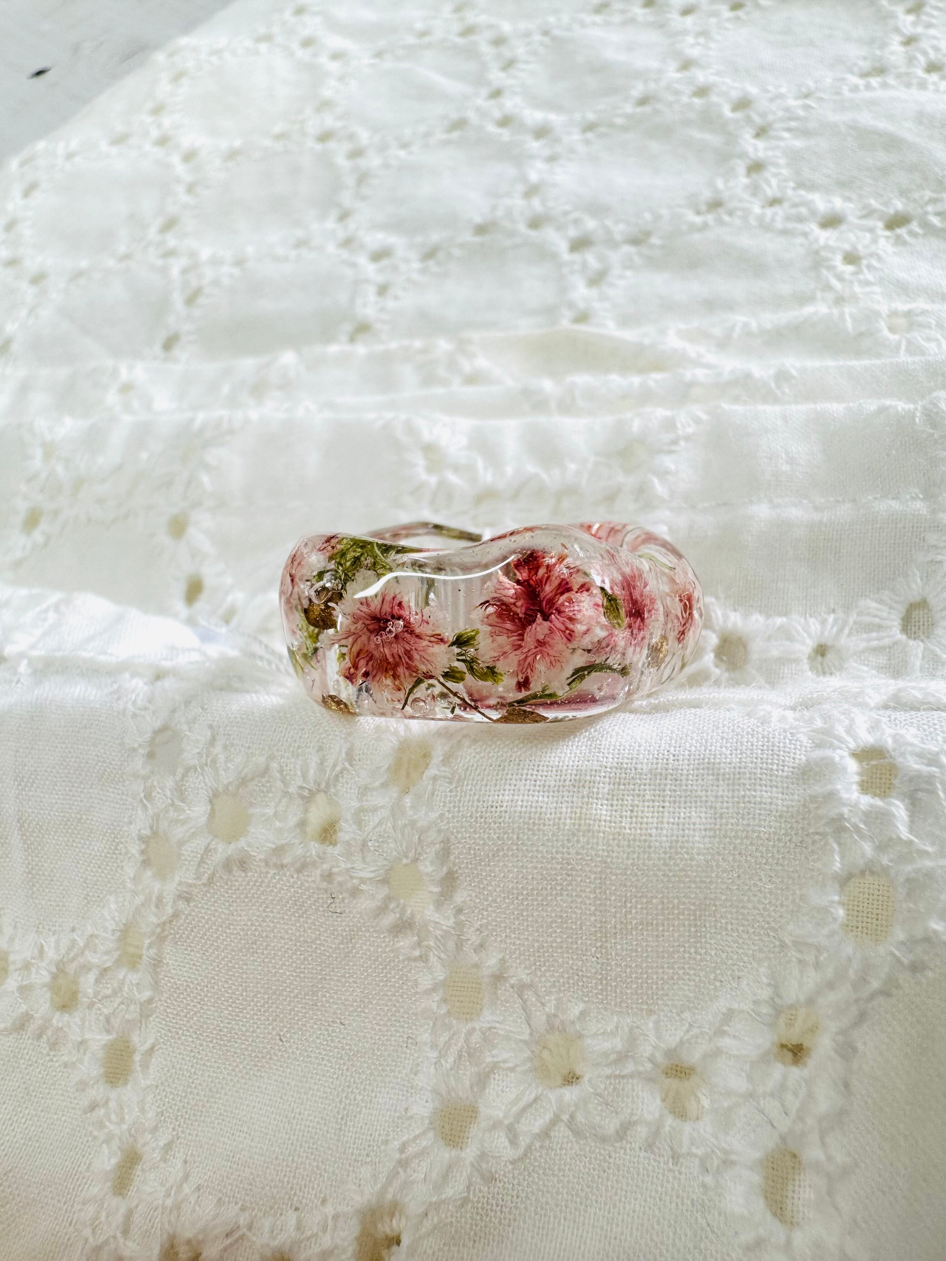 レジンとお花のリング