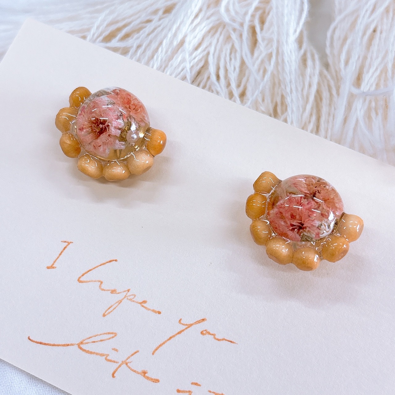 ウッドビーズとレジンを使った