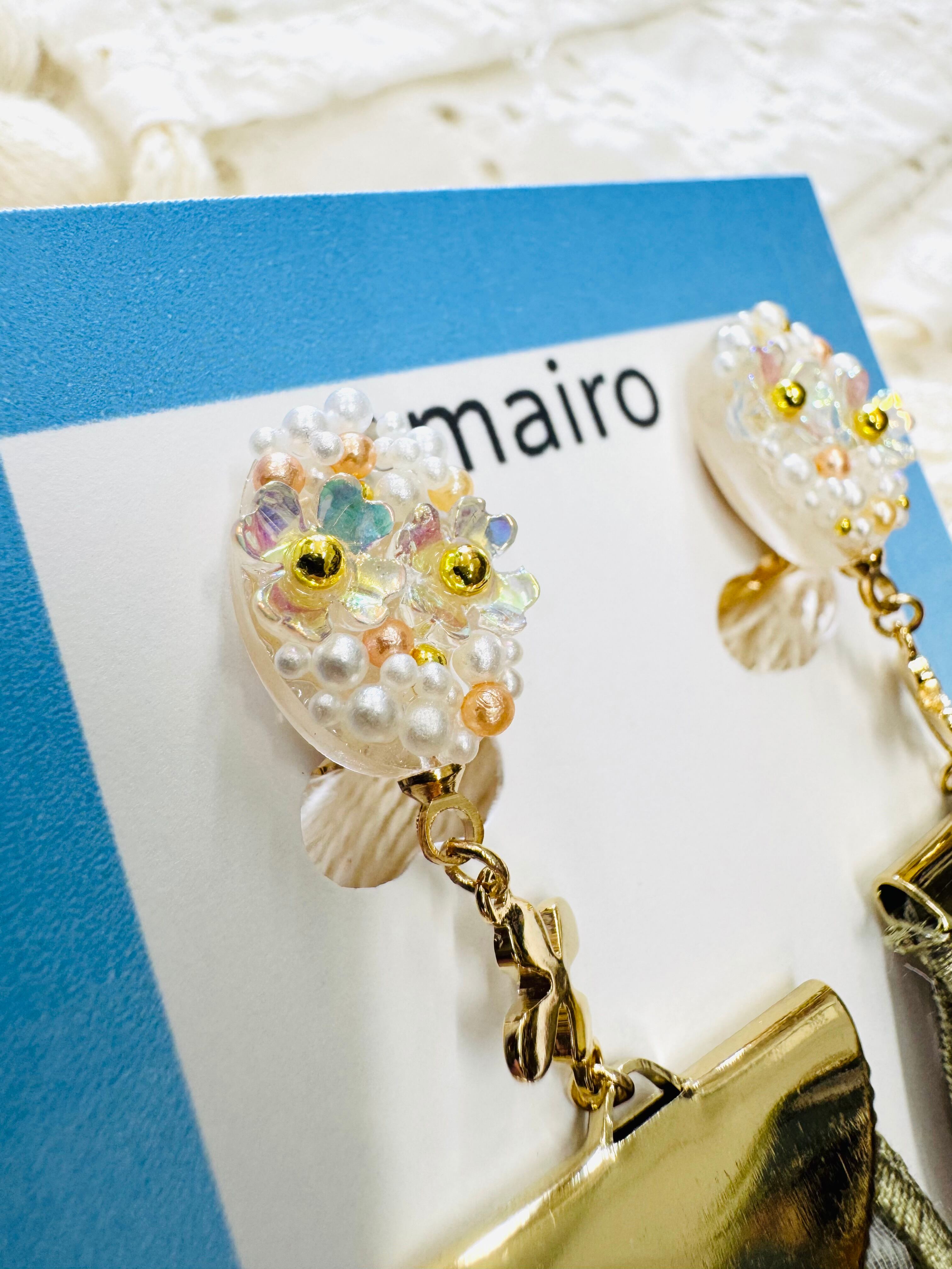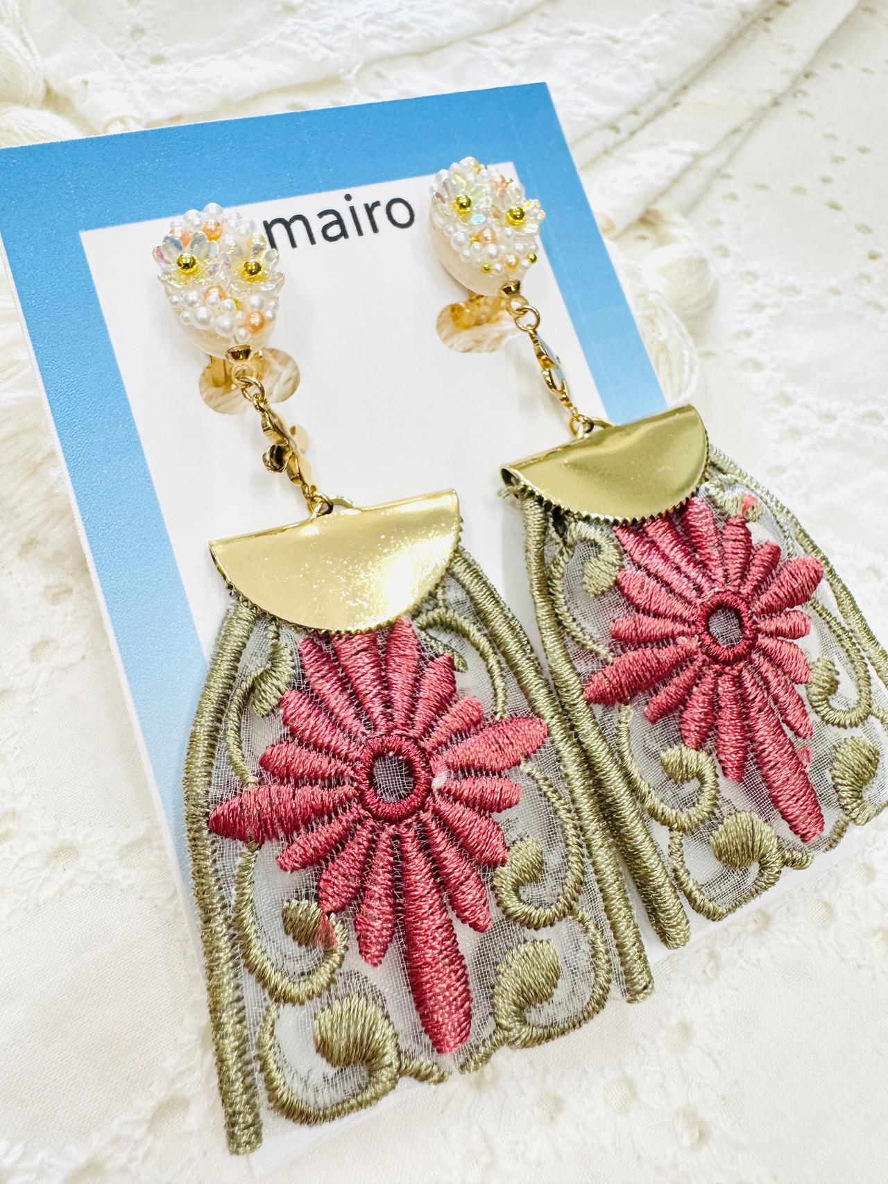 お花とインド刺繍デザインのイヤリング