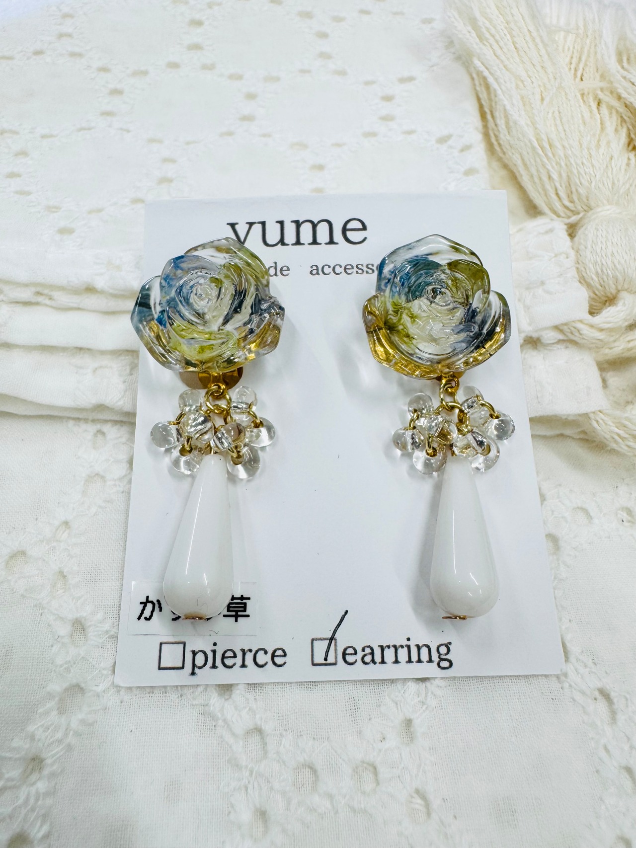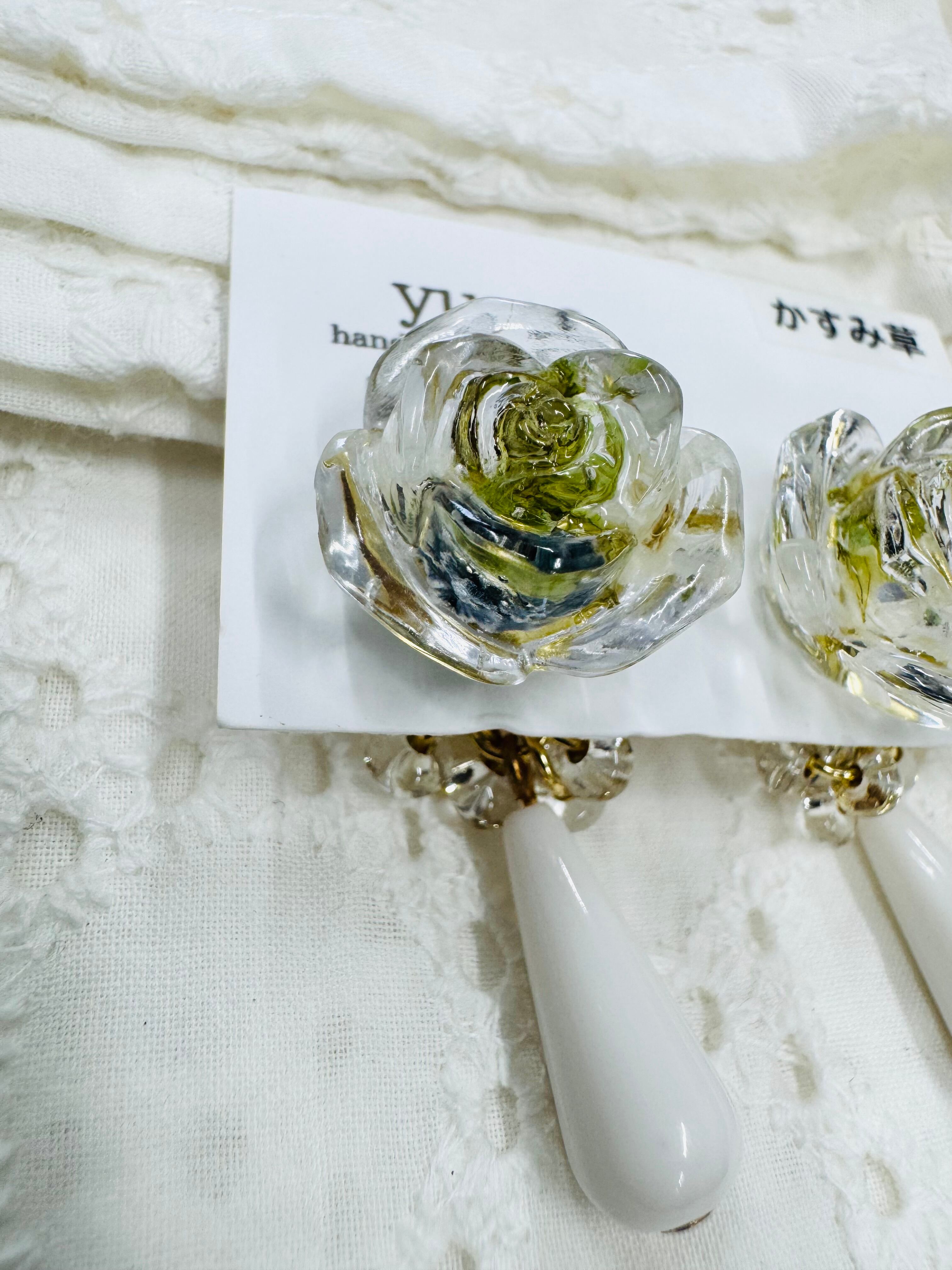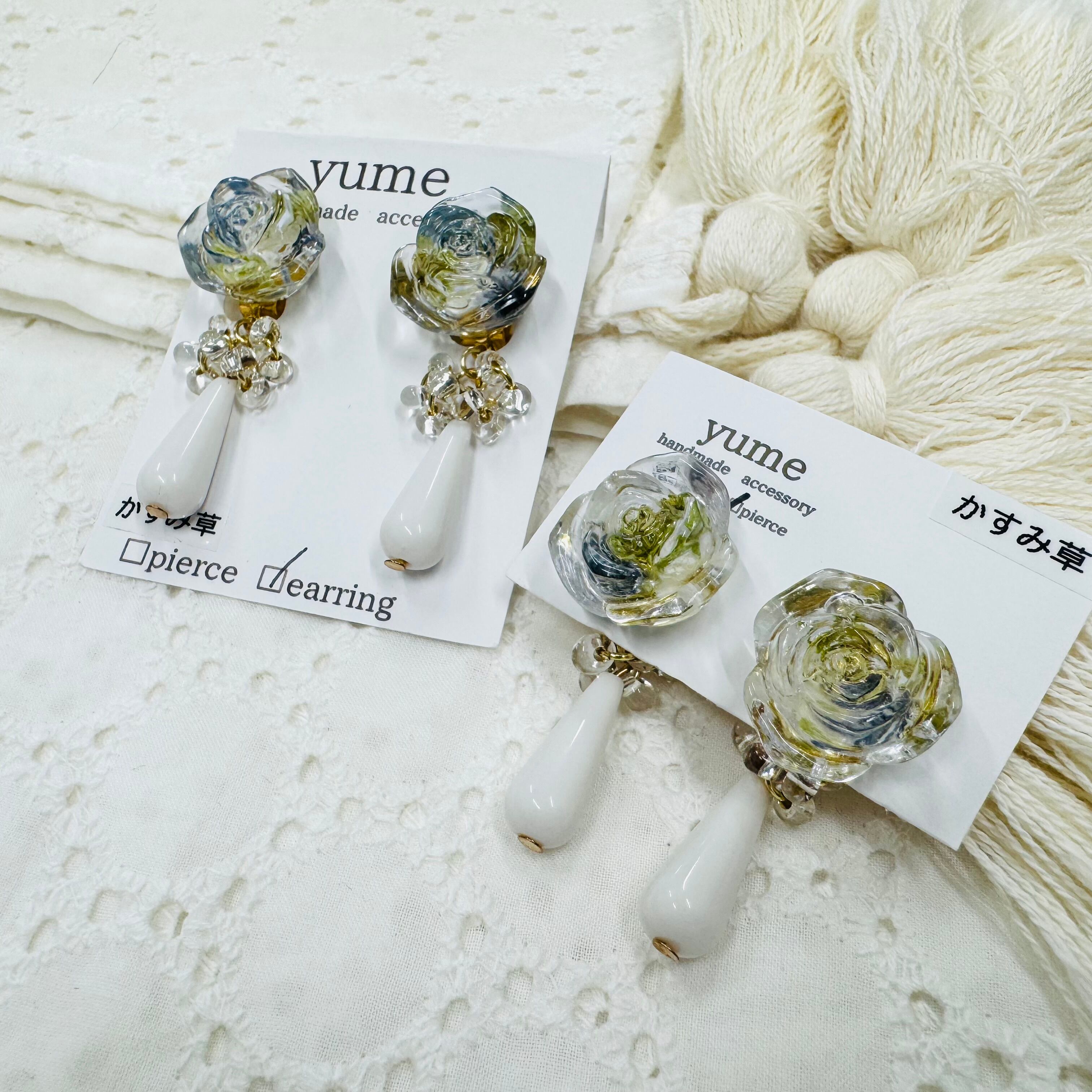 お花型のピアスとイヤリングです