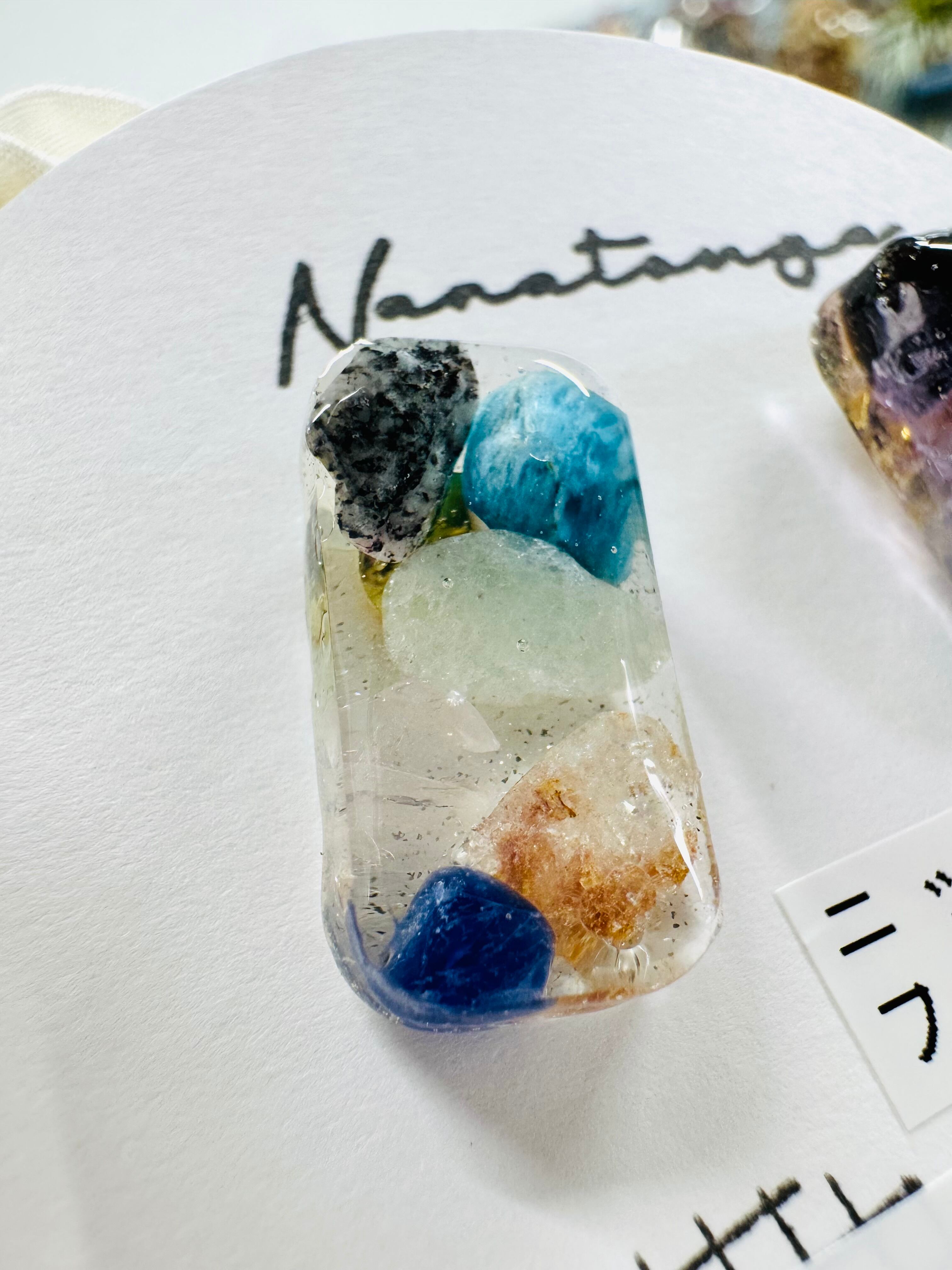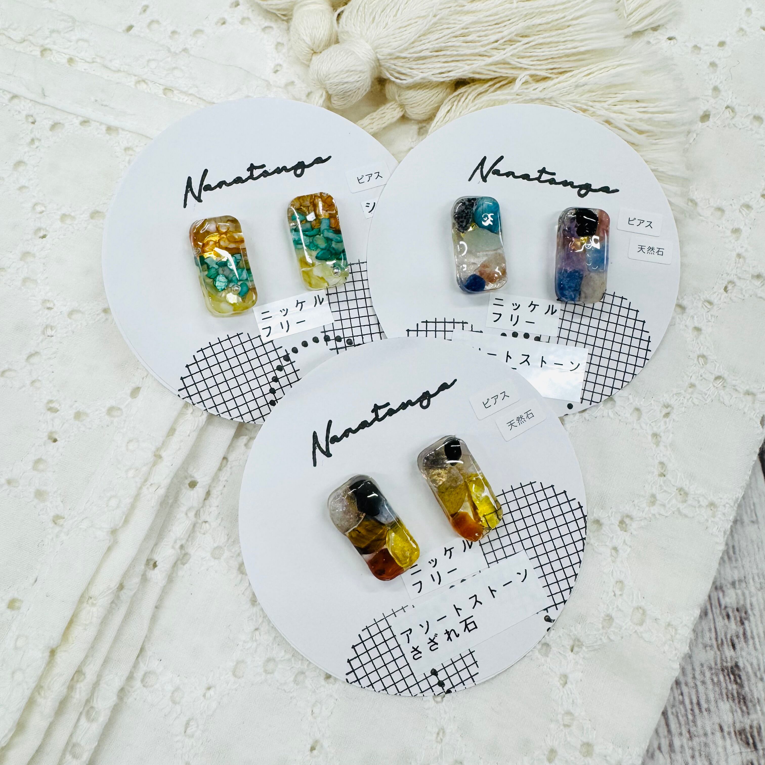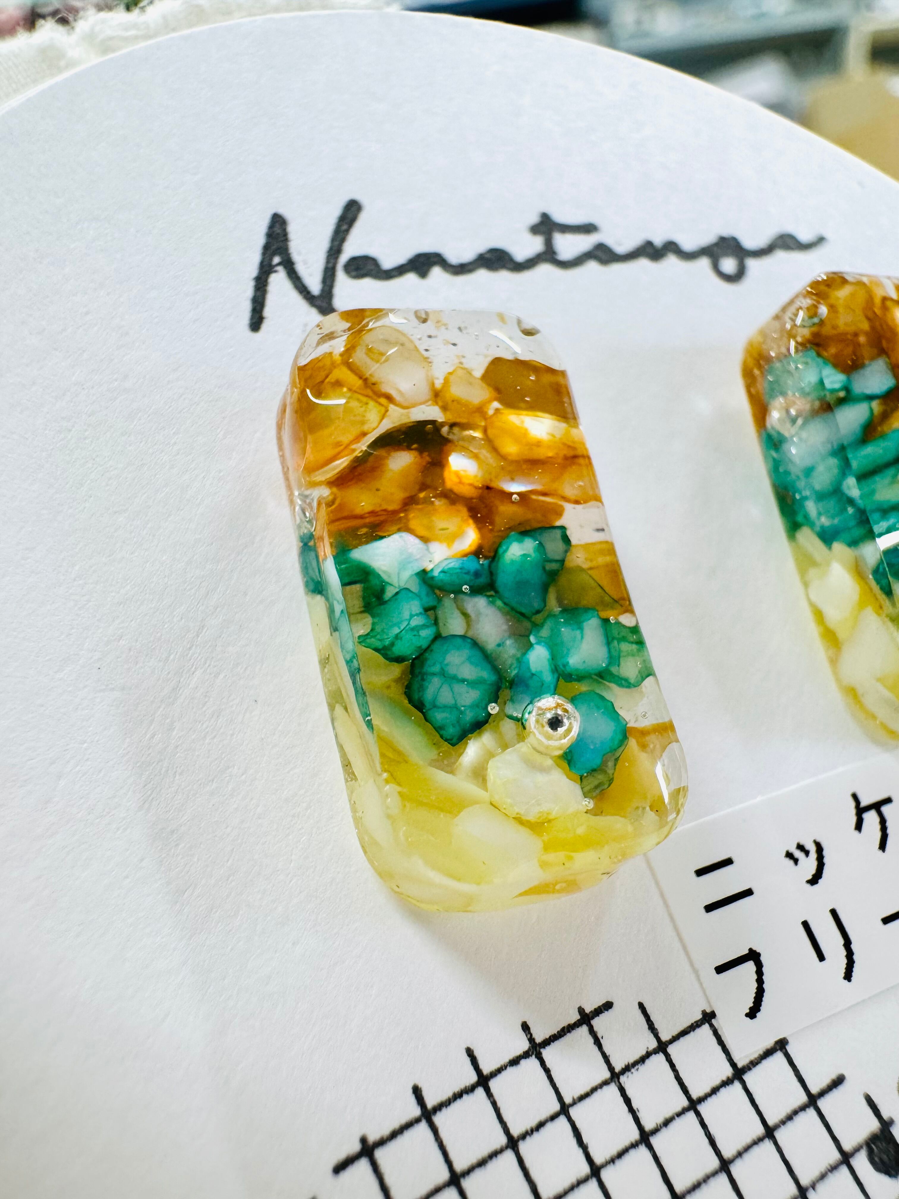 天然石とシェルのスクエアピアス