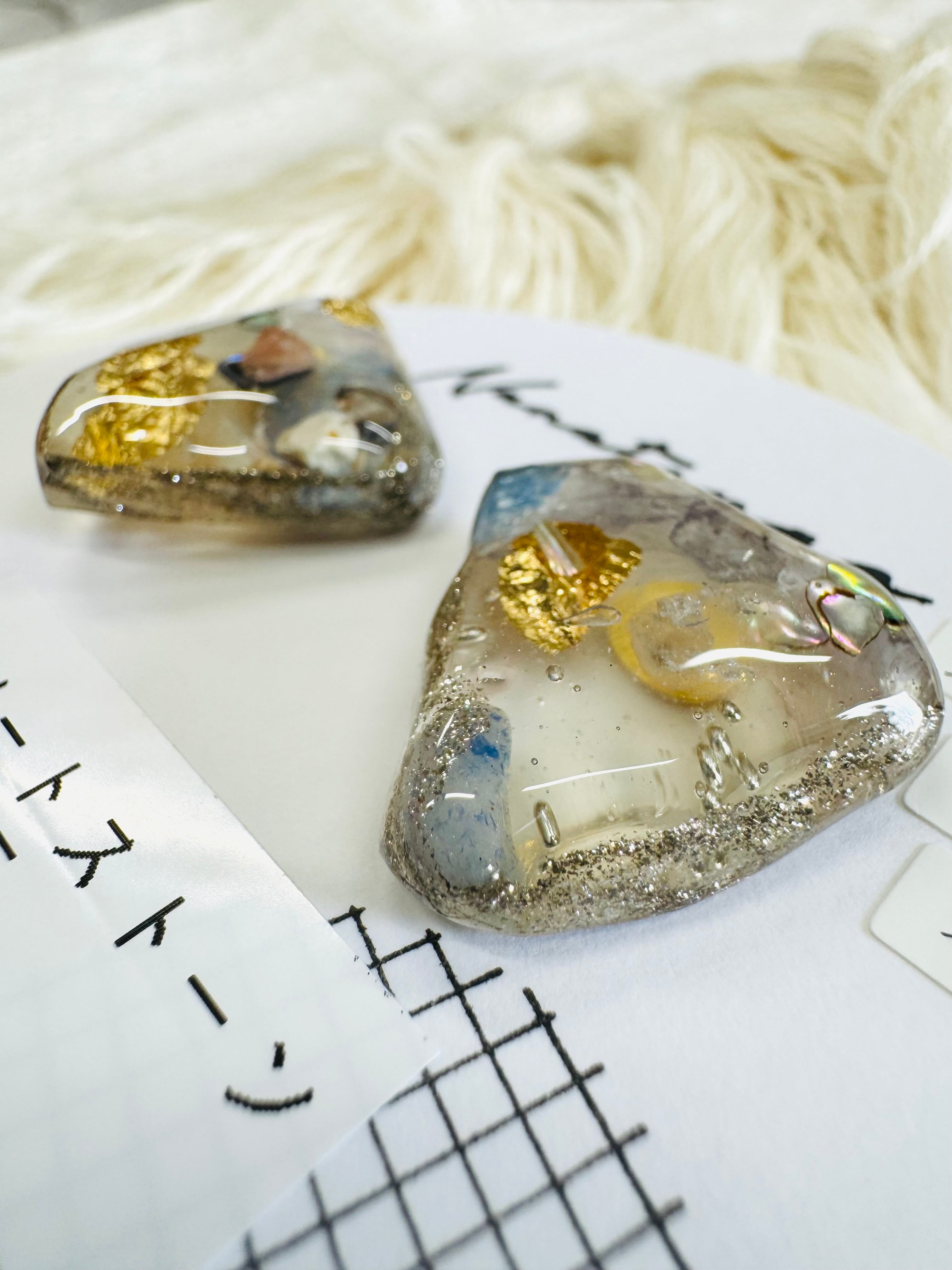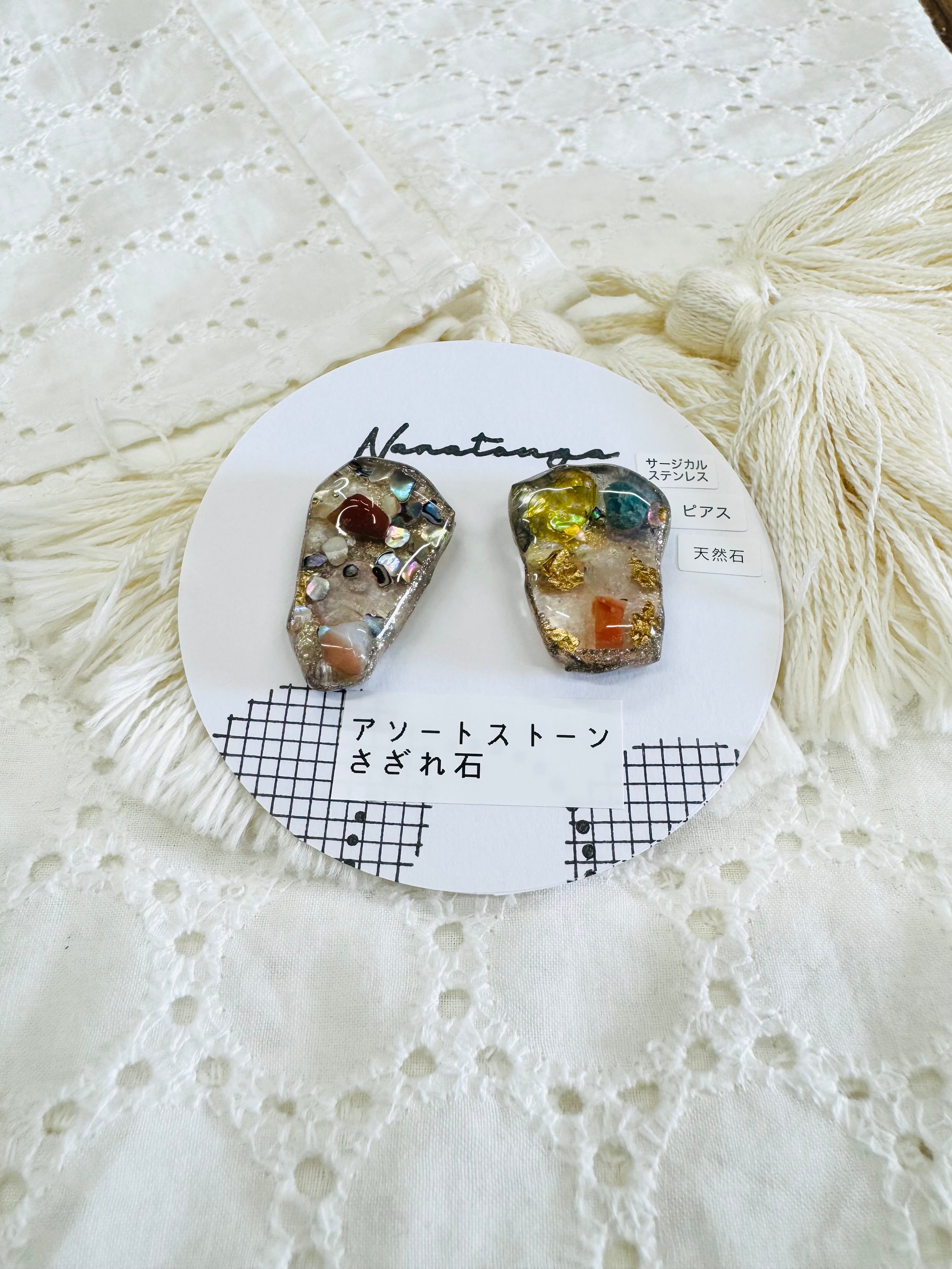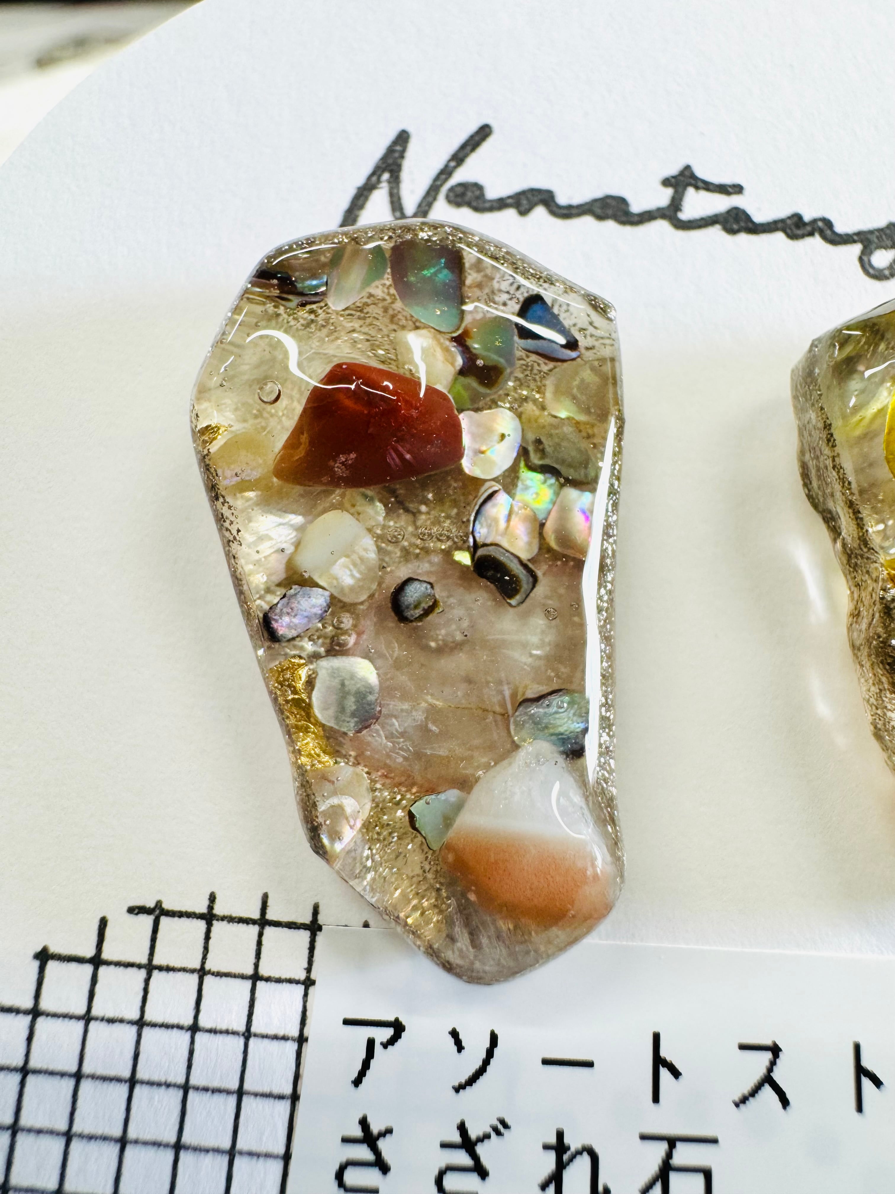 レジンとさざれ石のピアスです