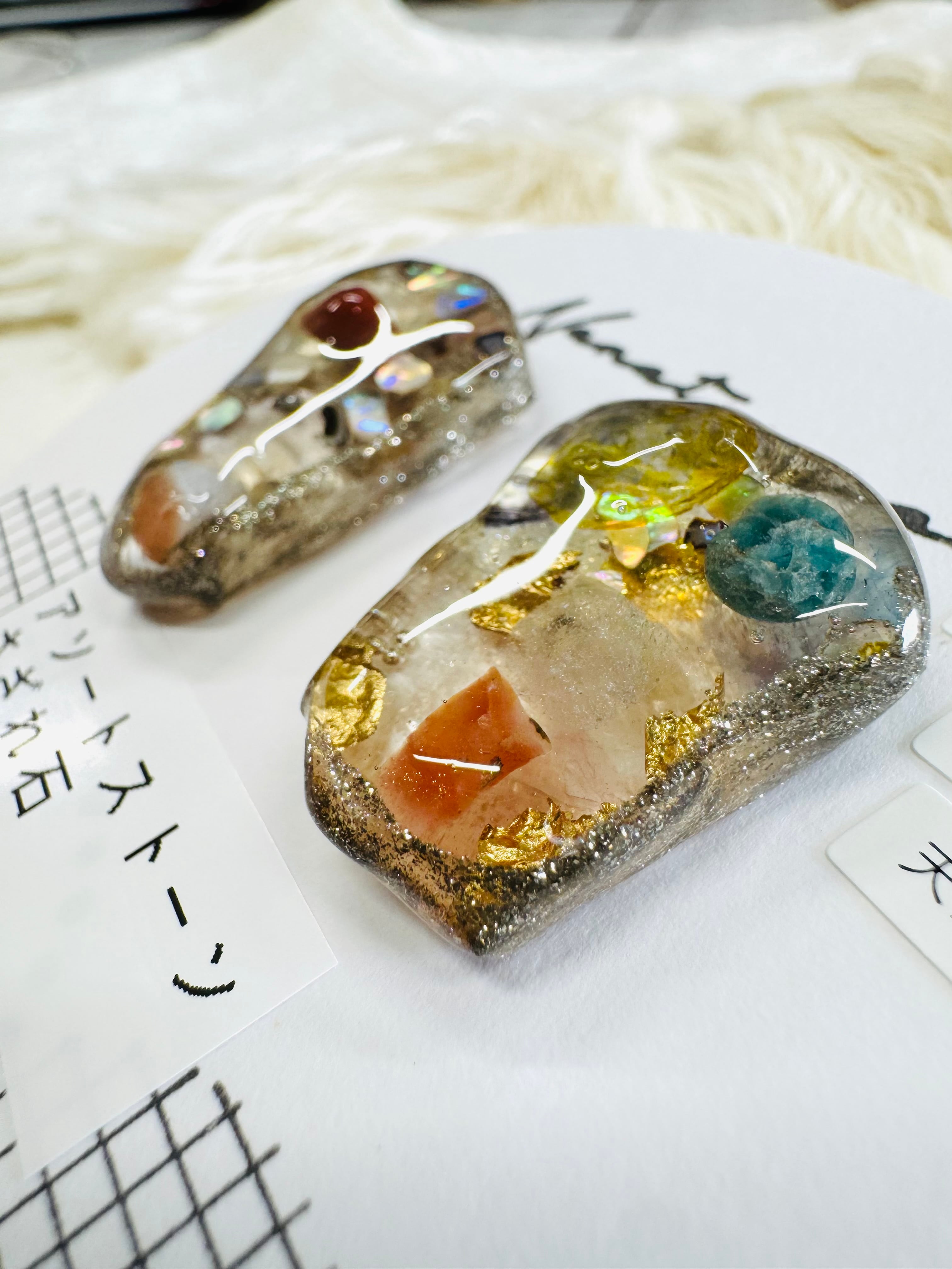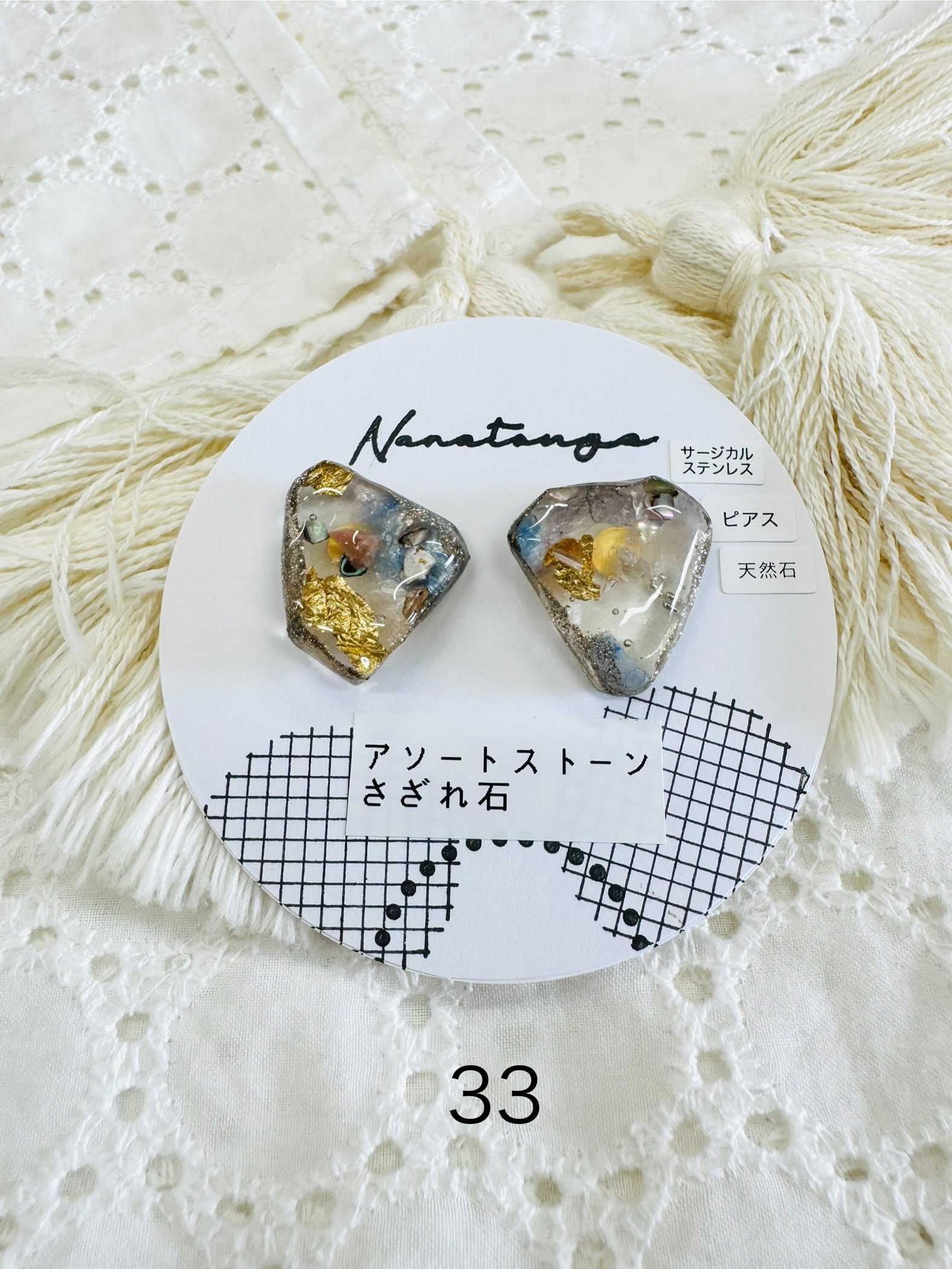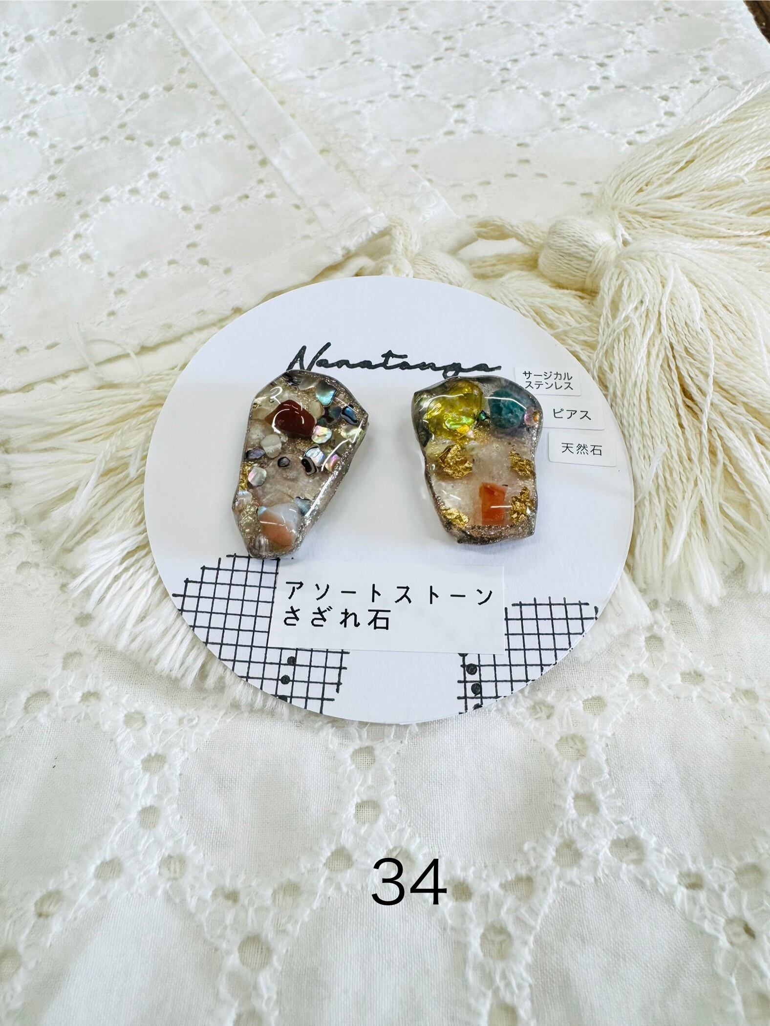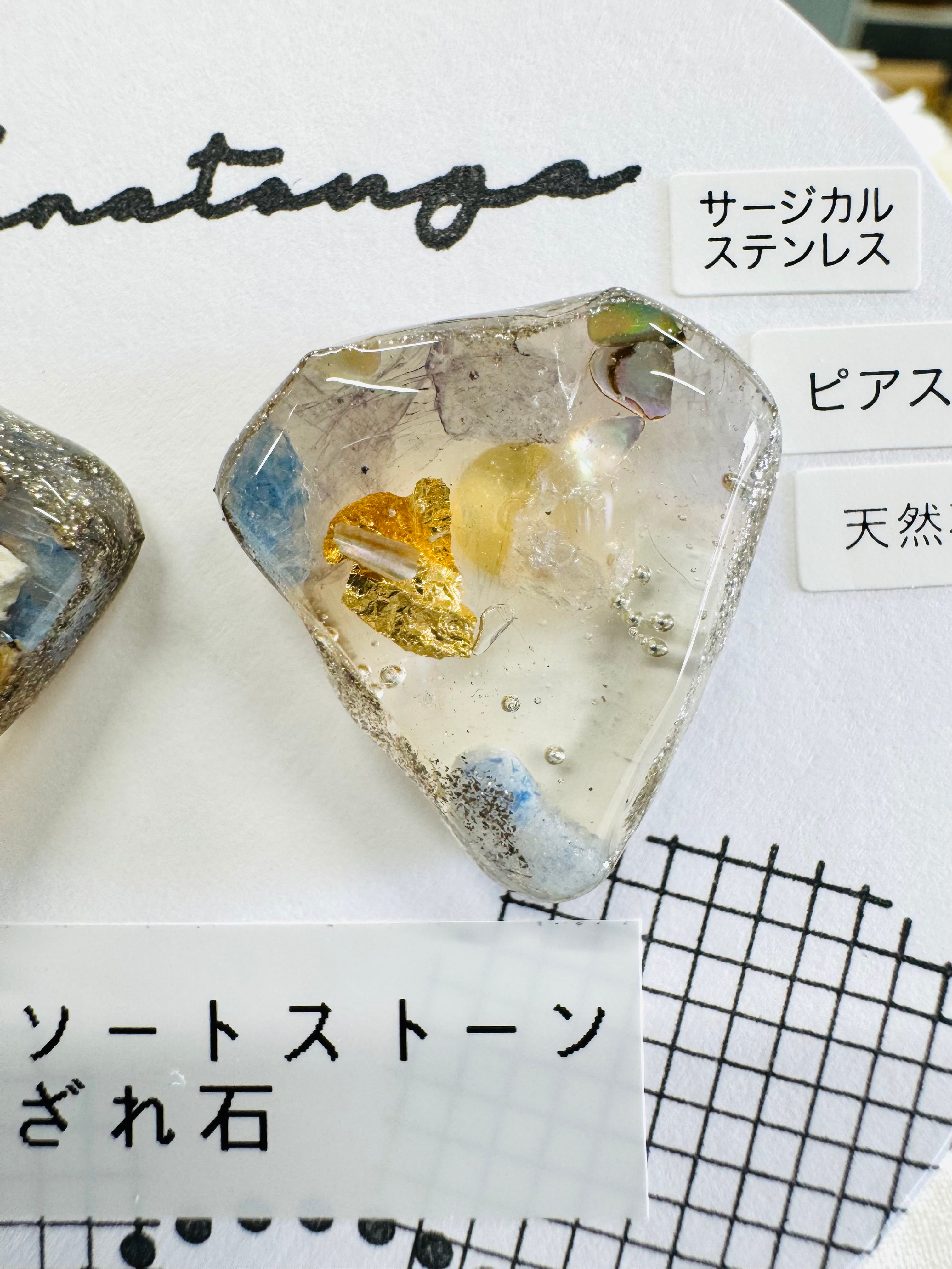 レジンとさざれ石のピアスです