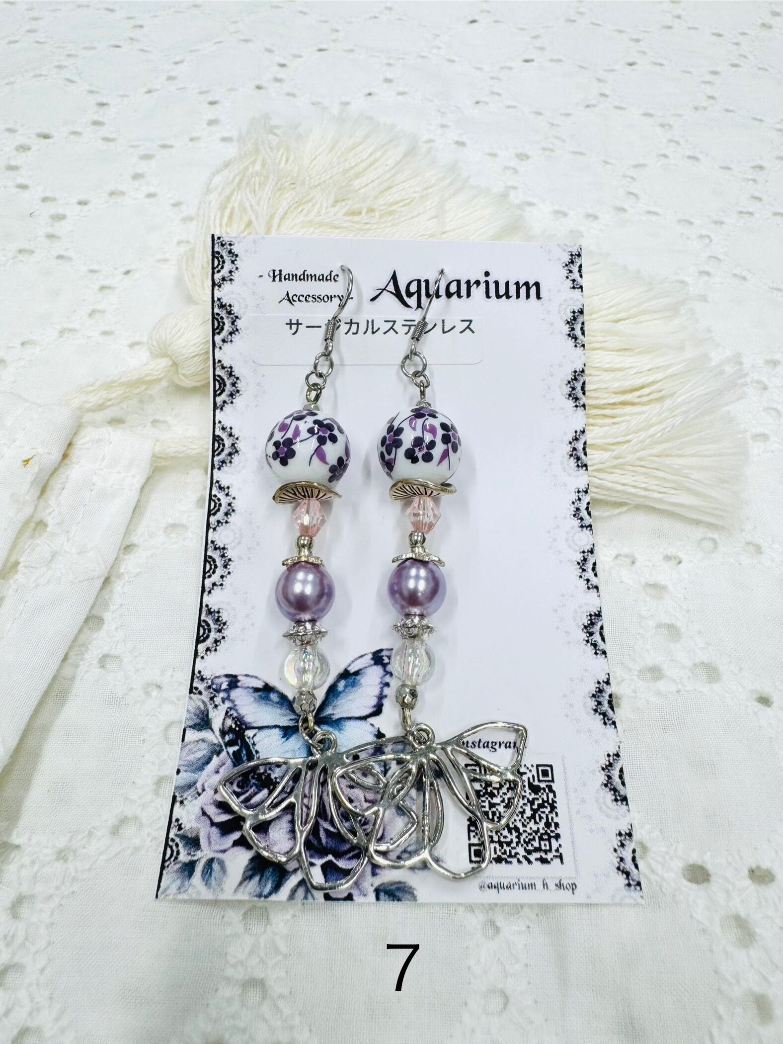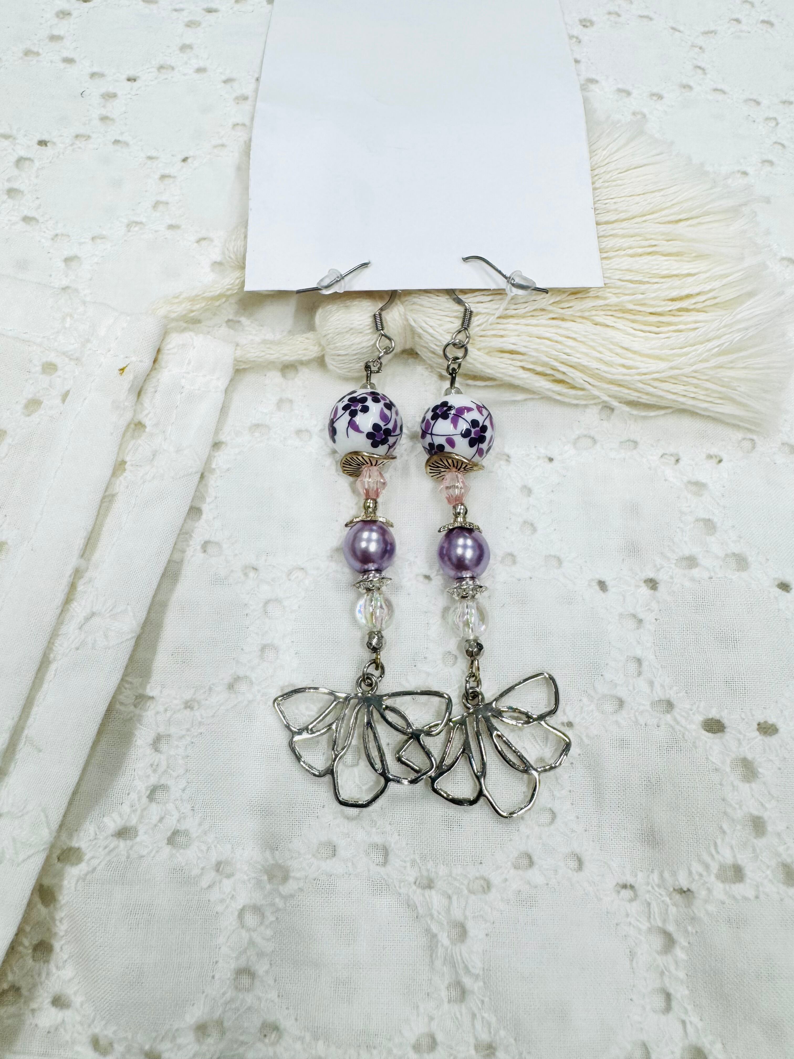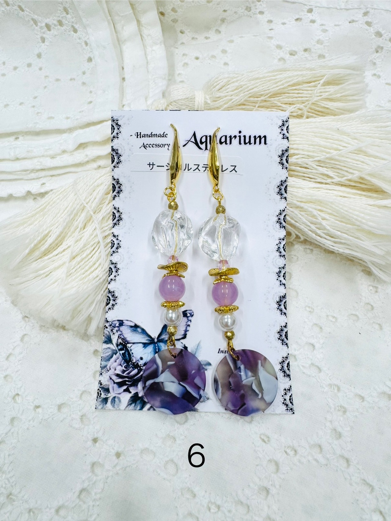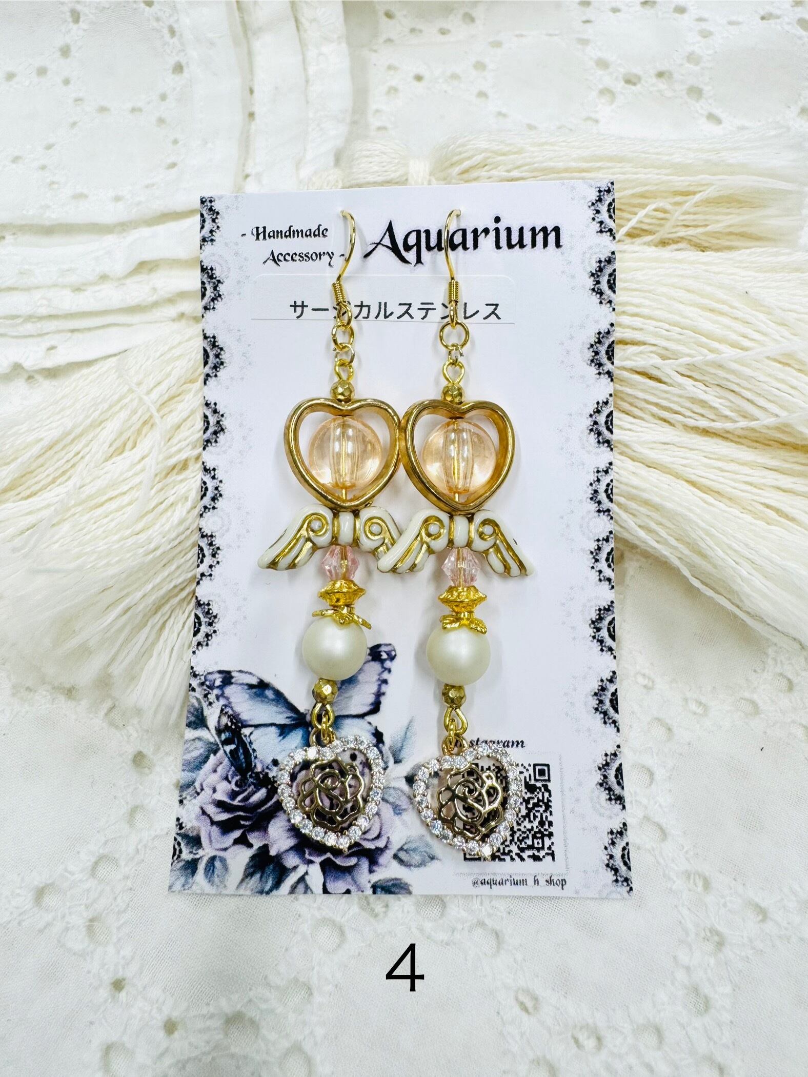 しゃらしゃら大人可愛いデザインの一点物アクセサリー。個性的なビーズやモチーフを組み合わせ、耳元を華やかに彩ります。