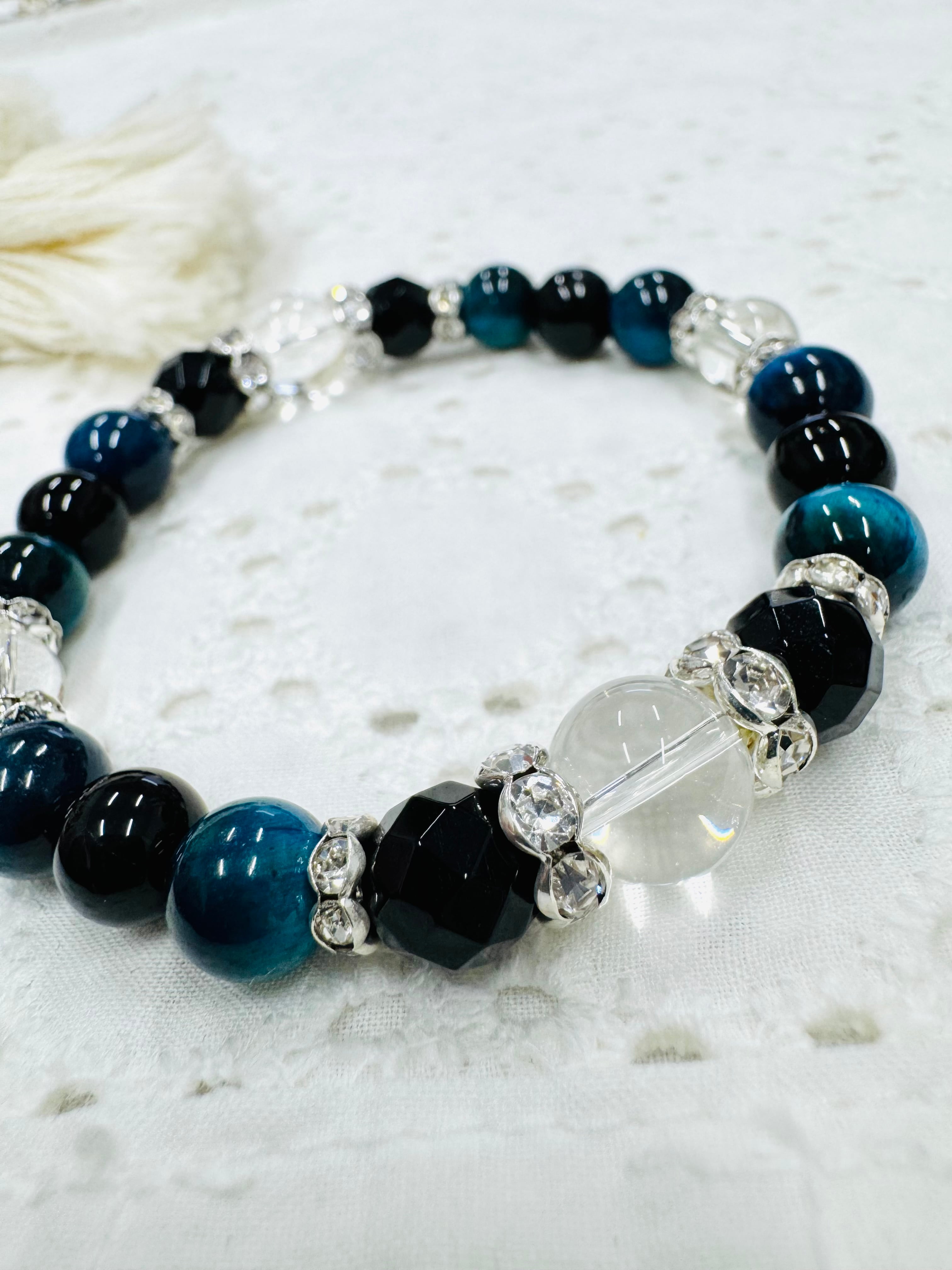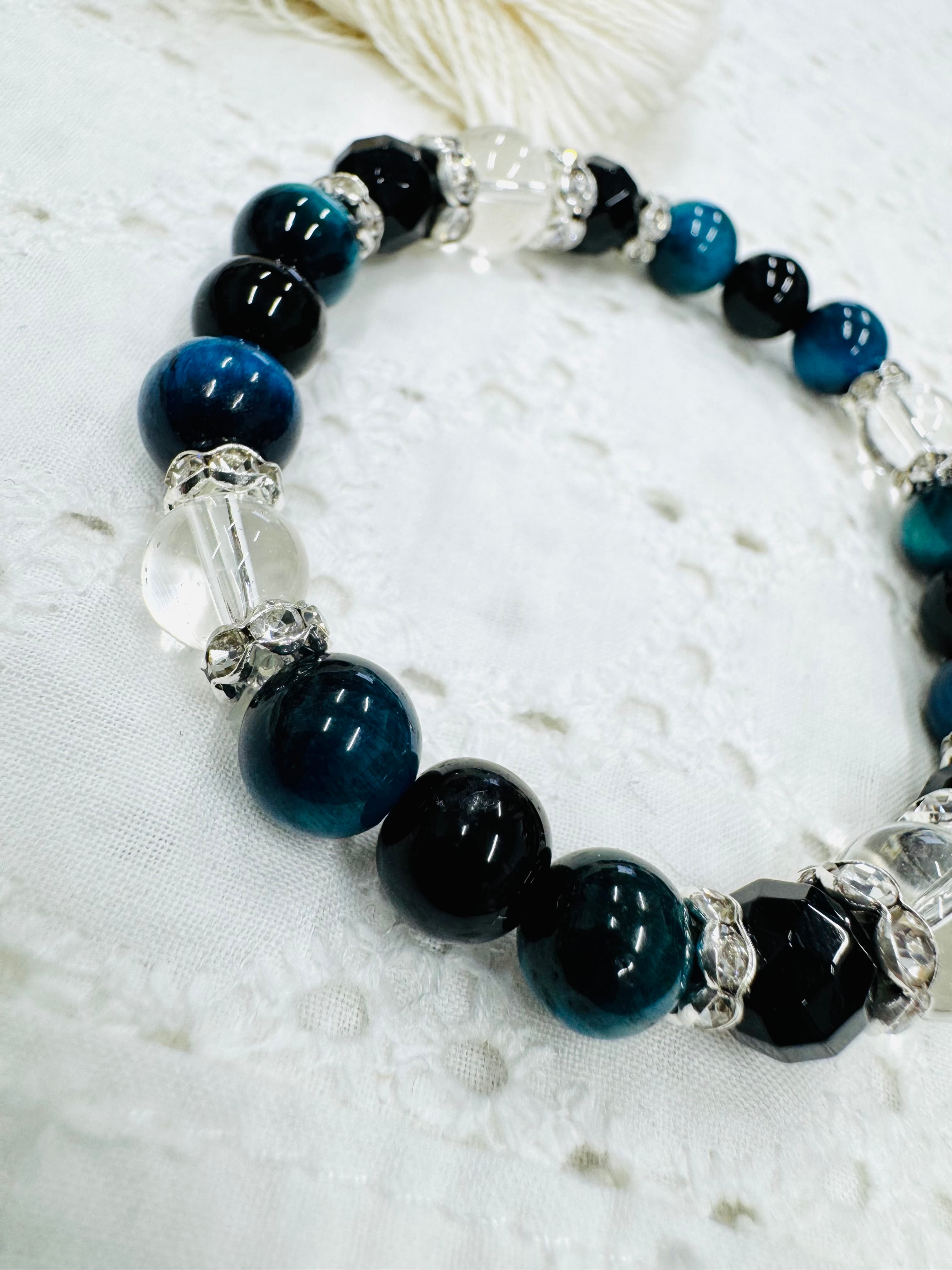 深みのあるブラックオニキスと魅惑のグラデーションカラーなエメラルドタイガーアイを組み合わせたブレスレット