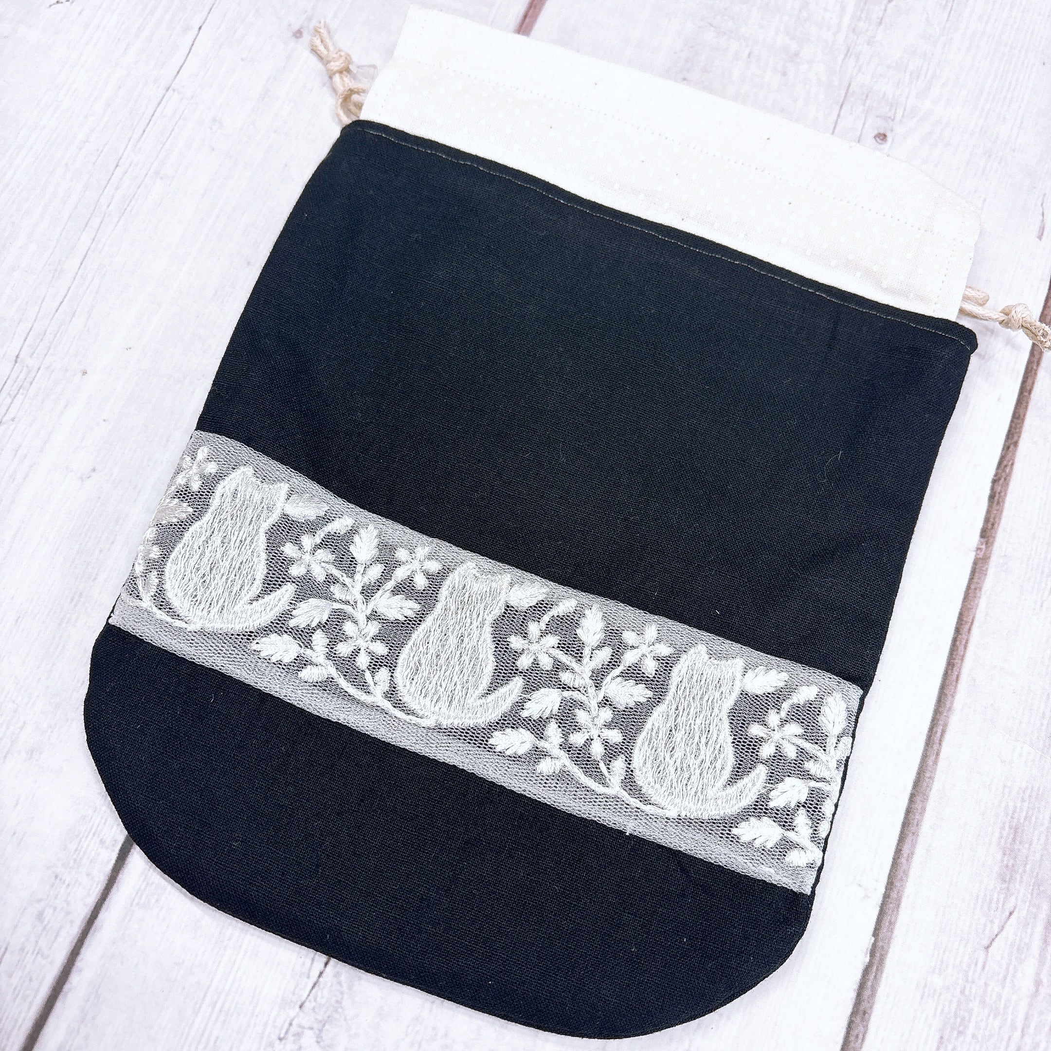インド刺繍にねこちゃんがいますよ