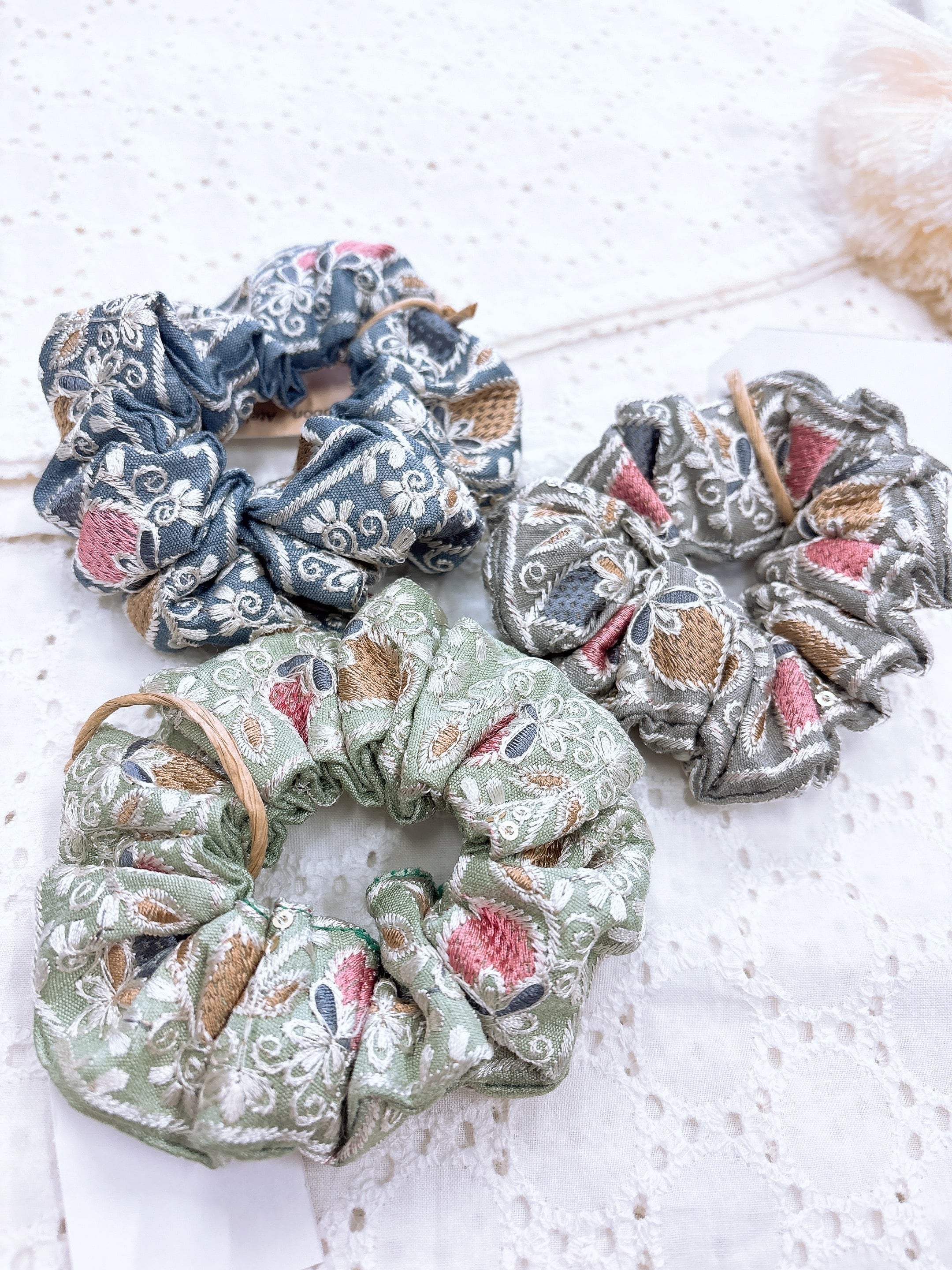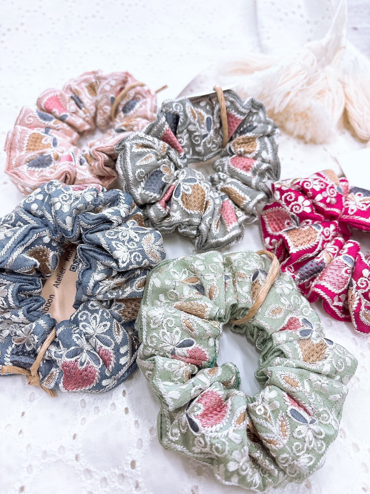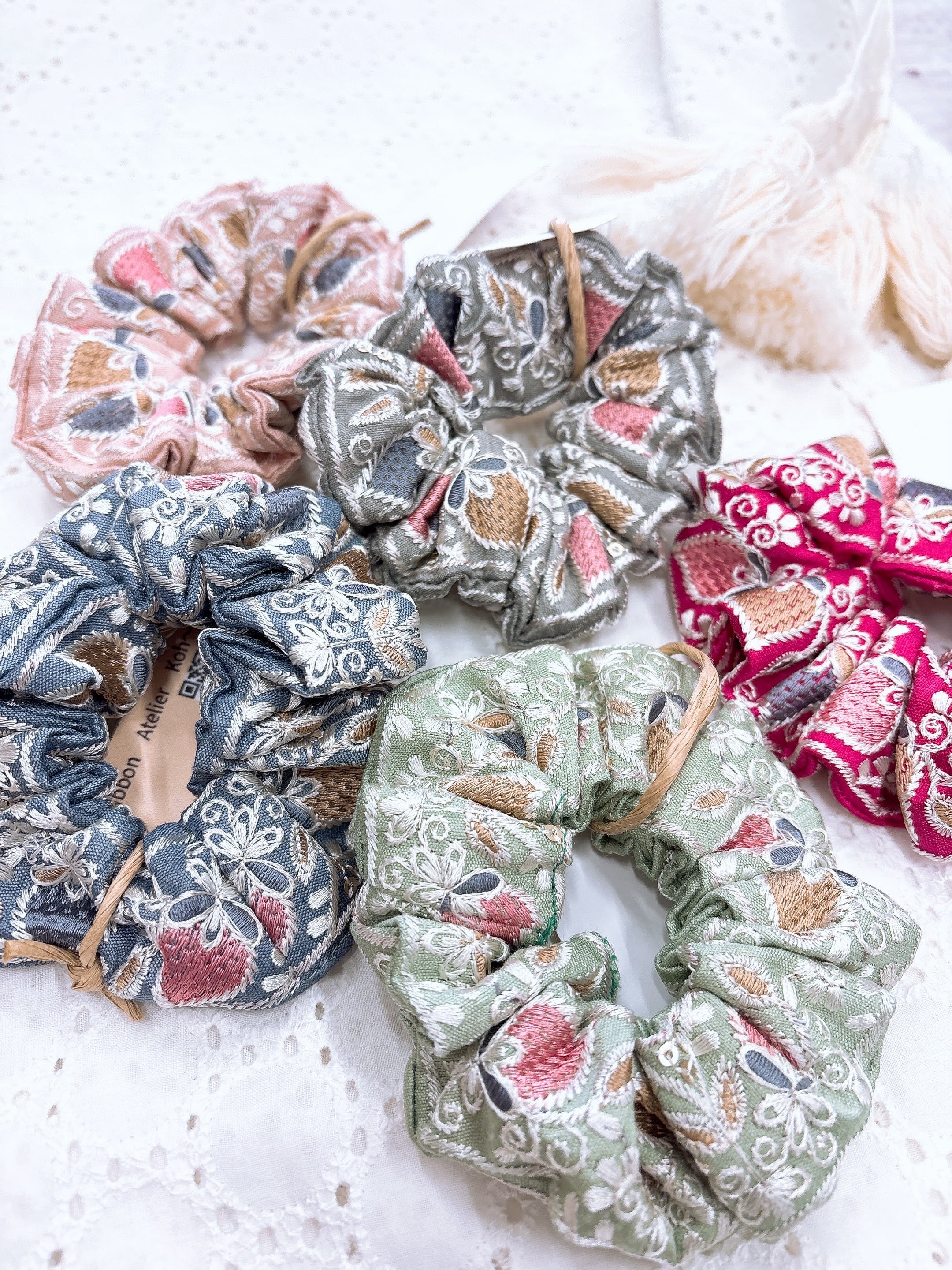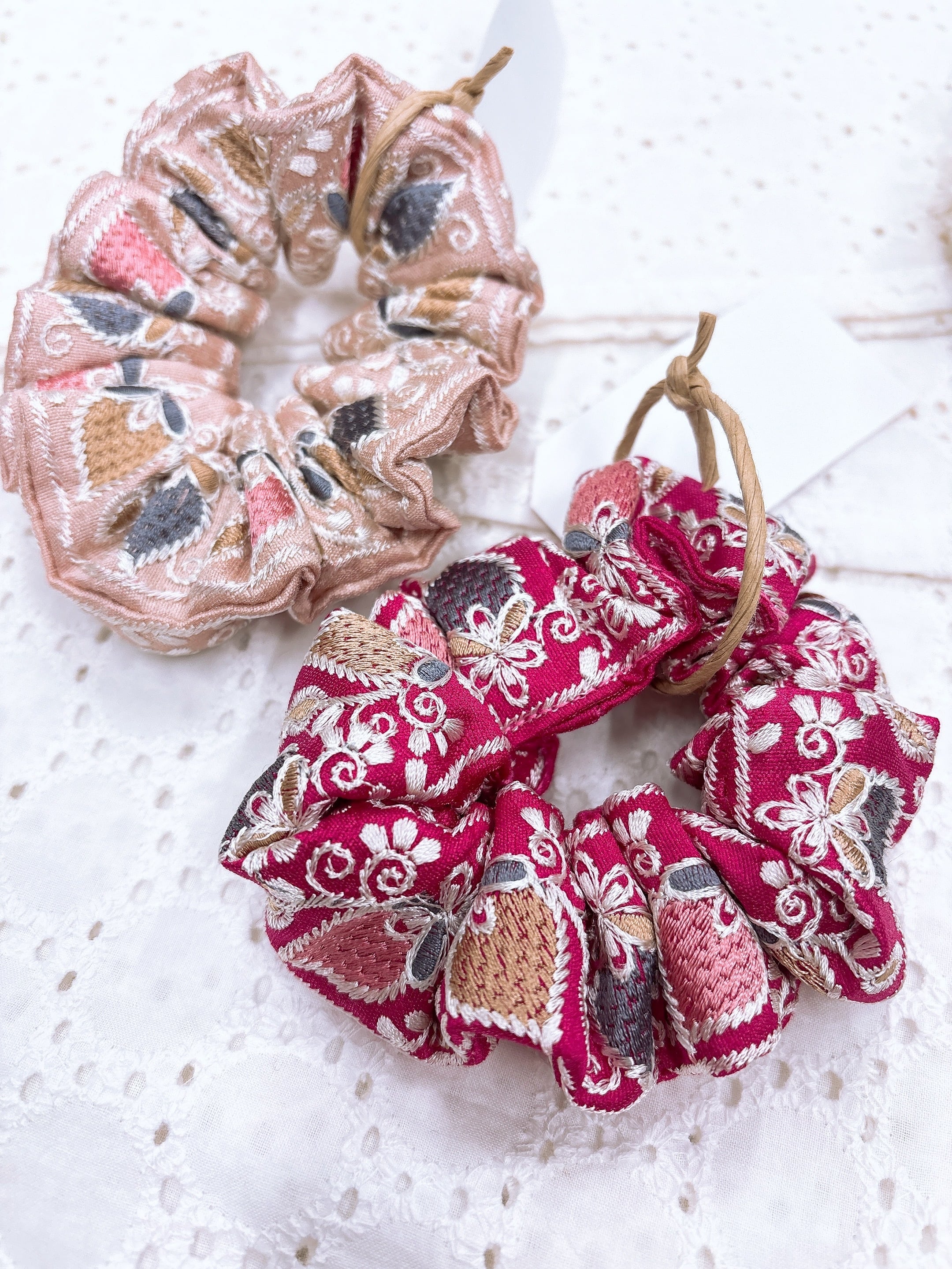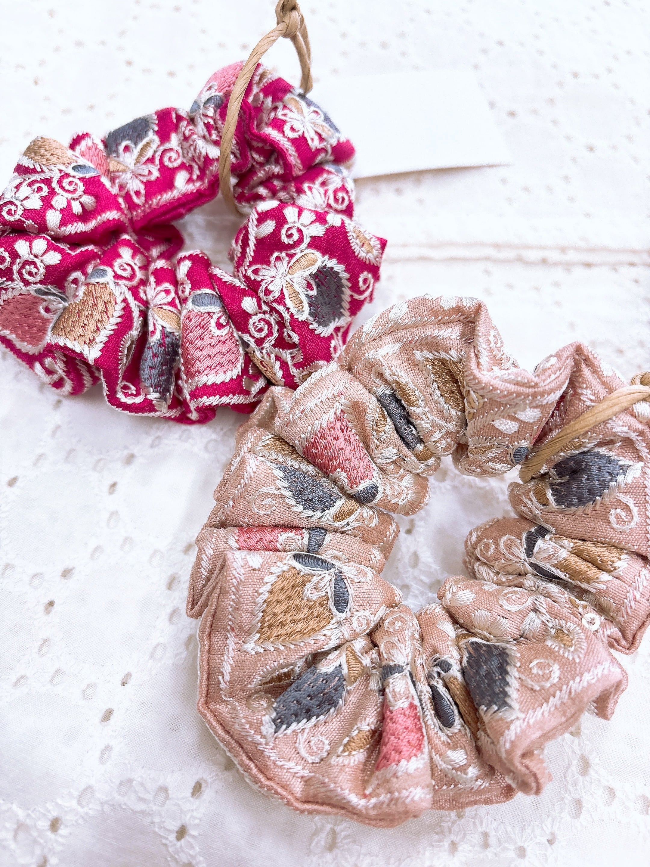 いちご柄の刺繍シュシュ
