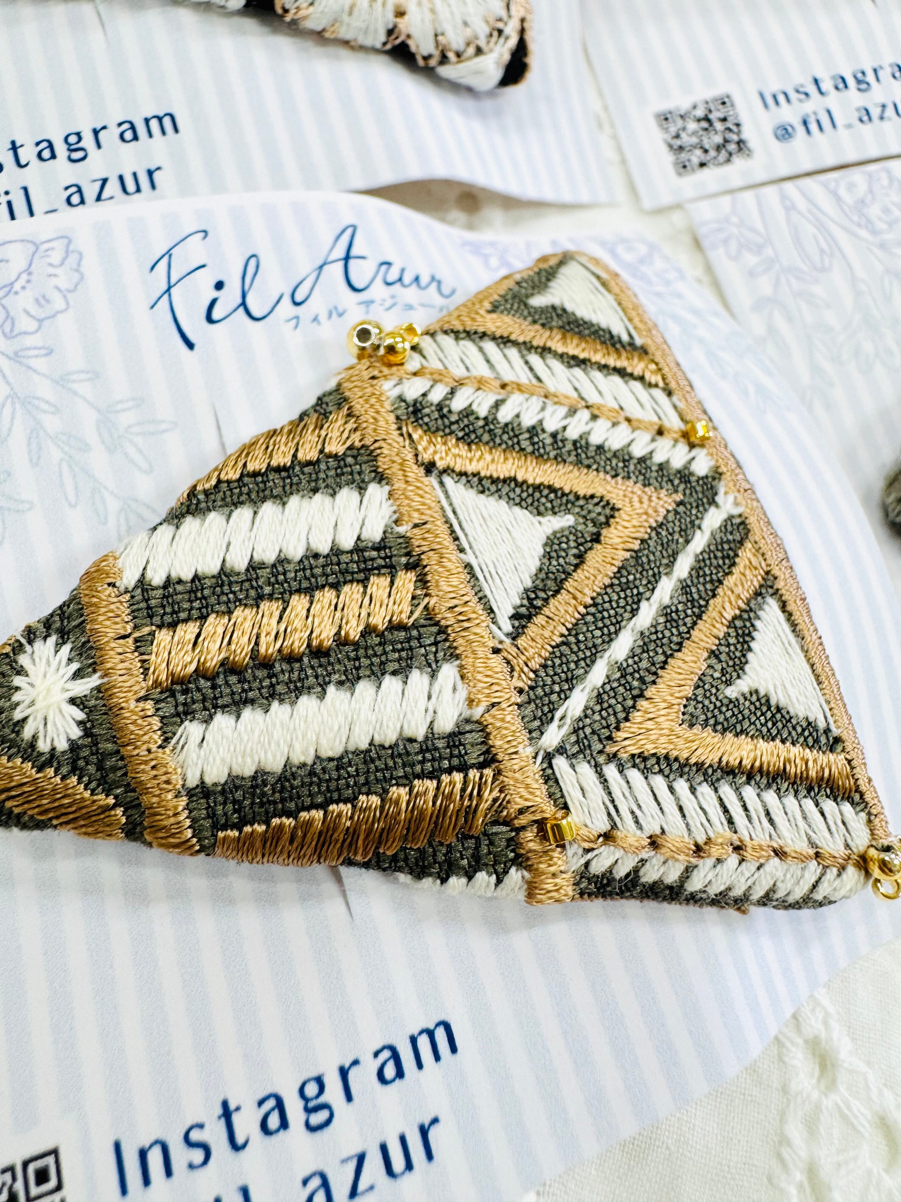 インド刺繍の三角パッチンピン