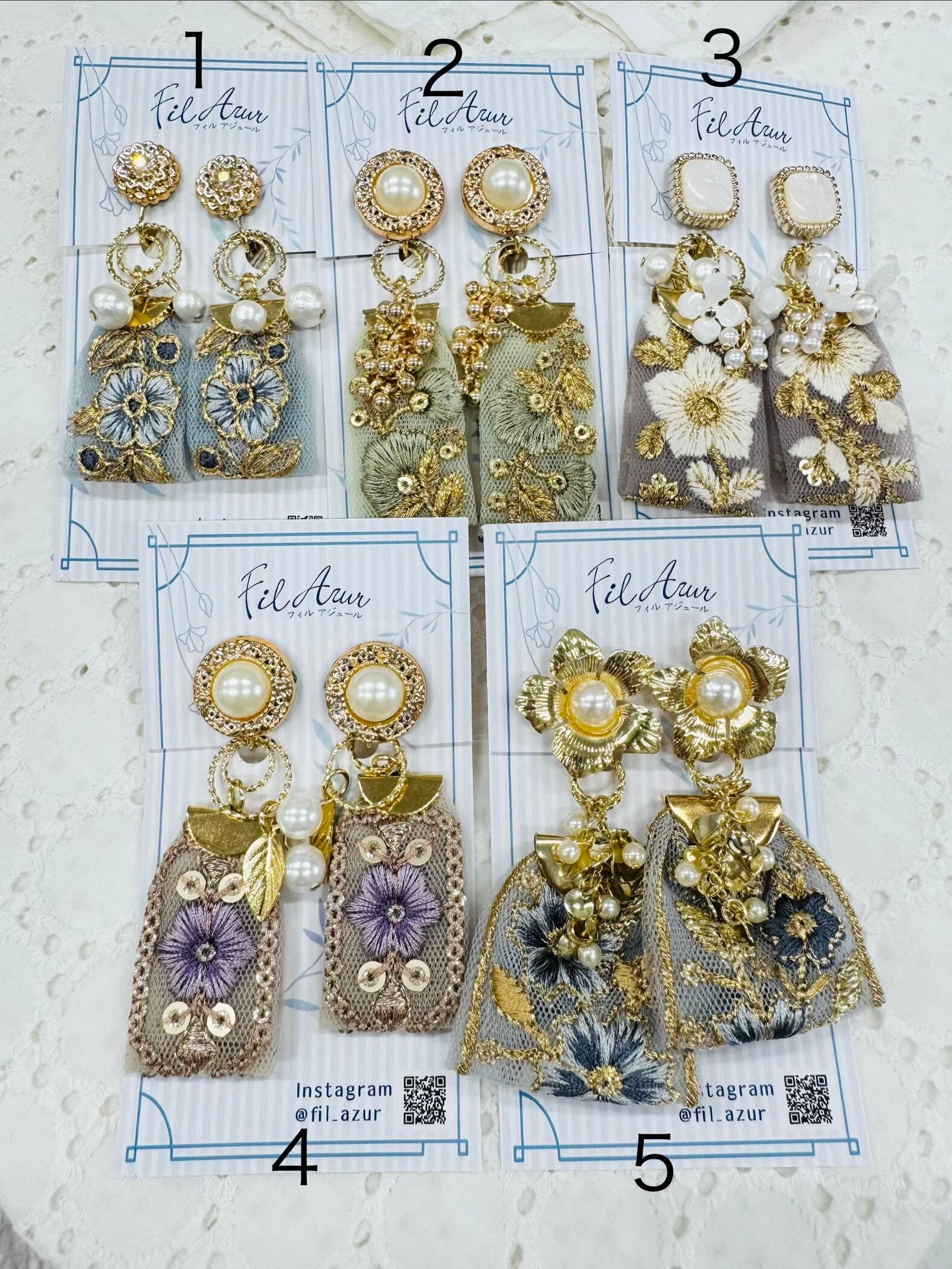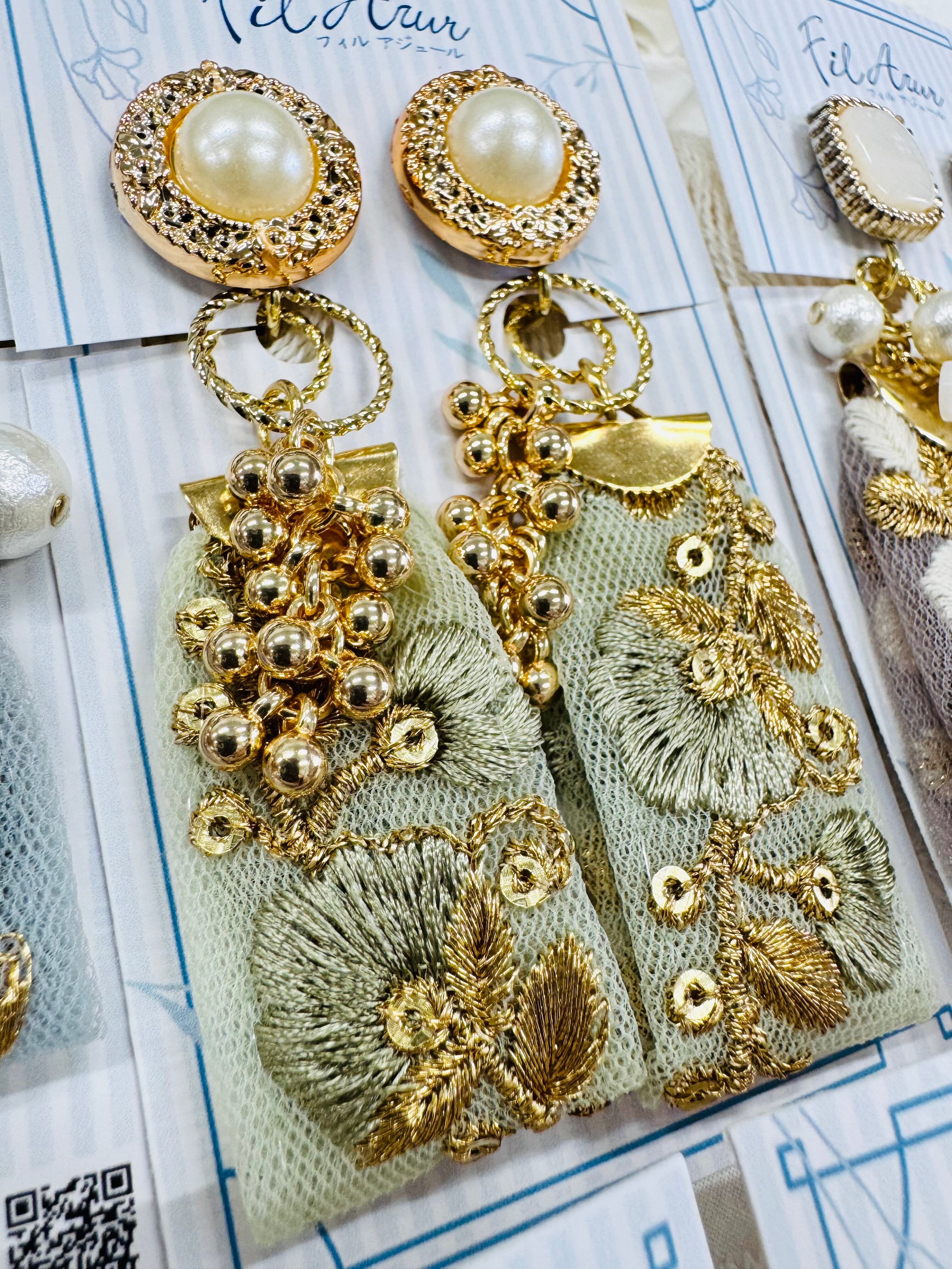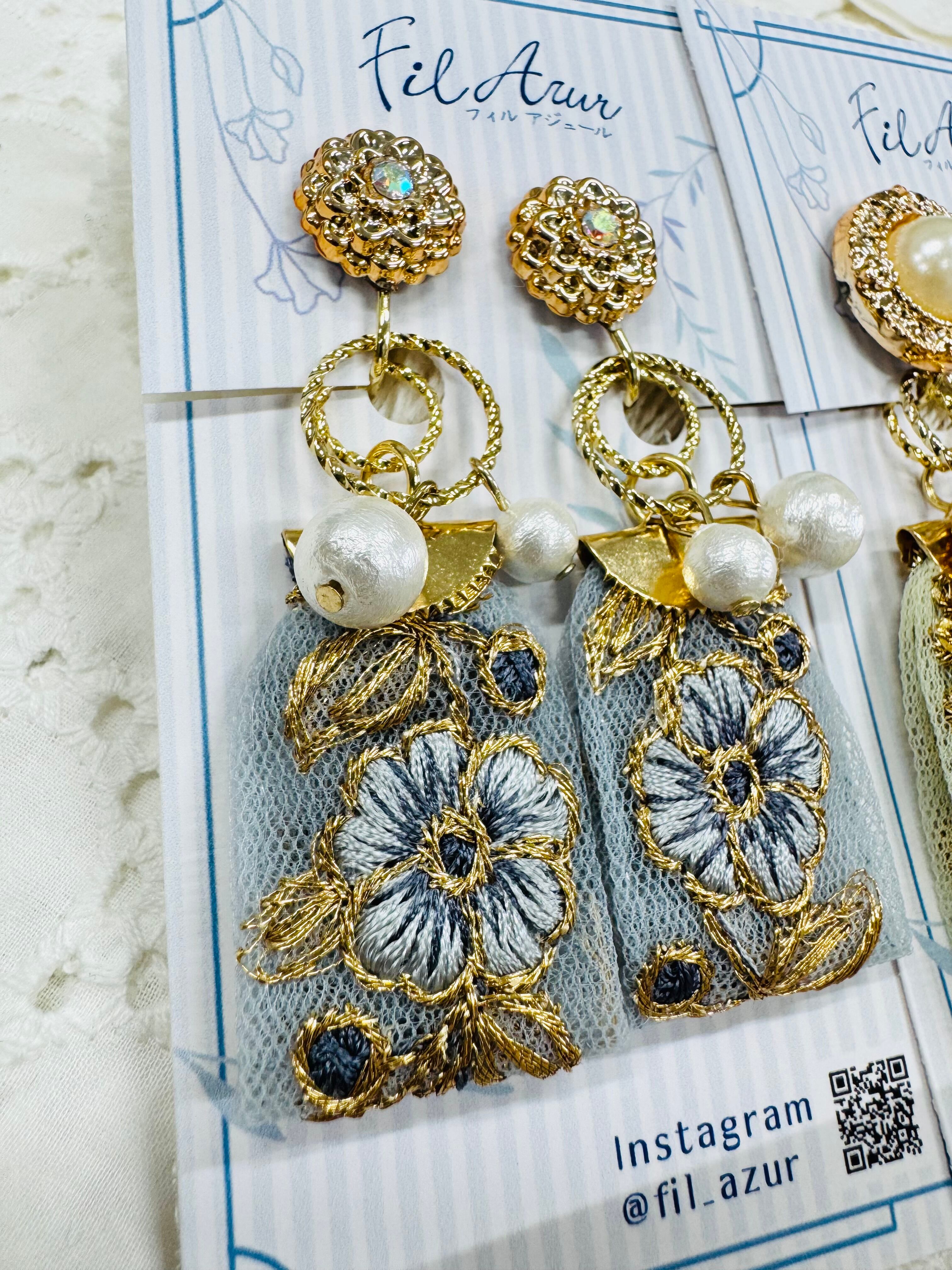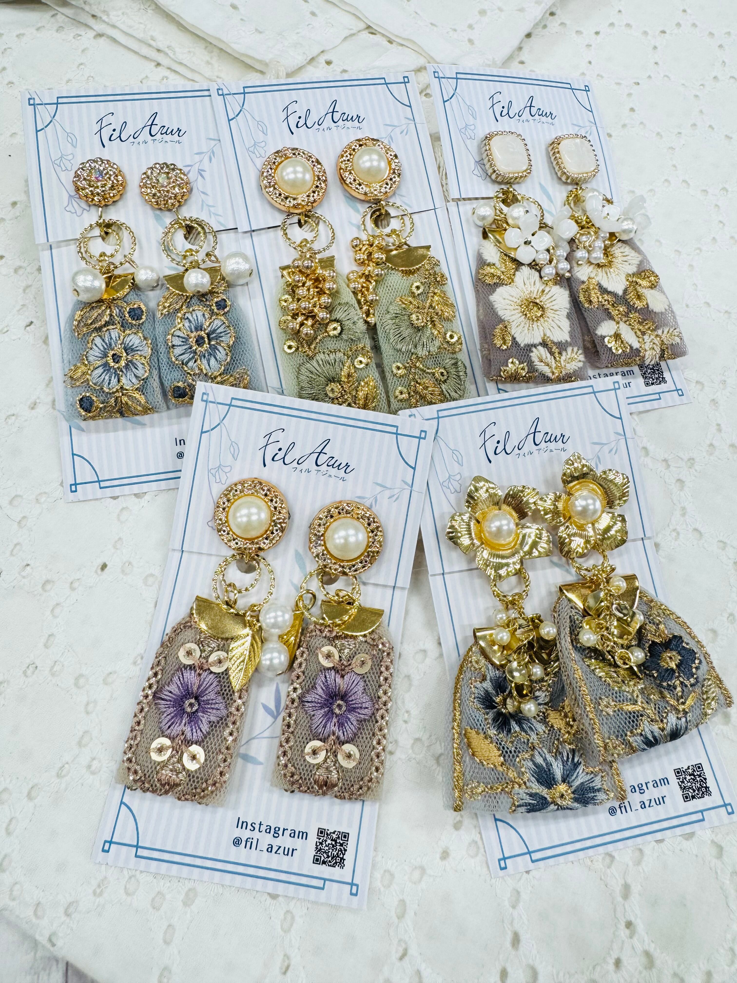 インド刺繍の2wayイヤリング【Fil Azur】