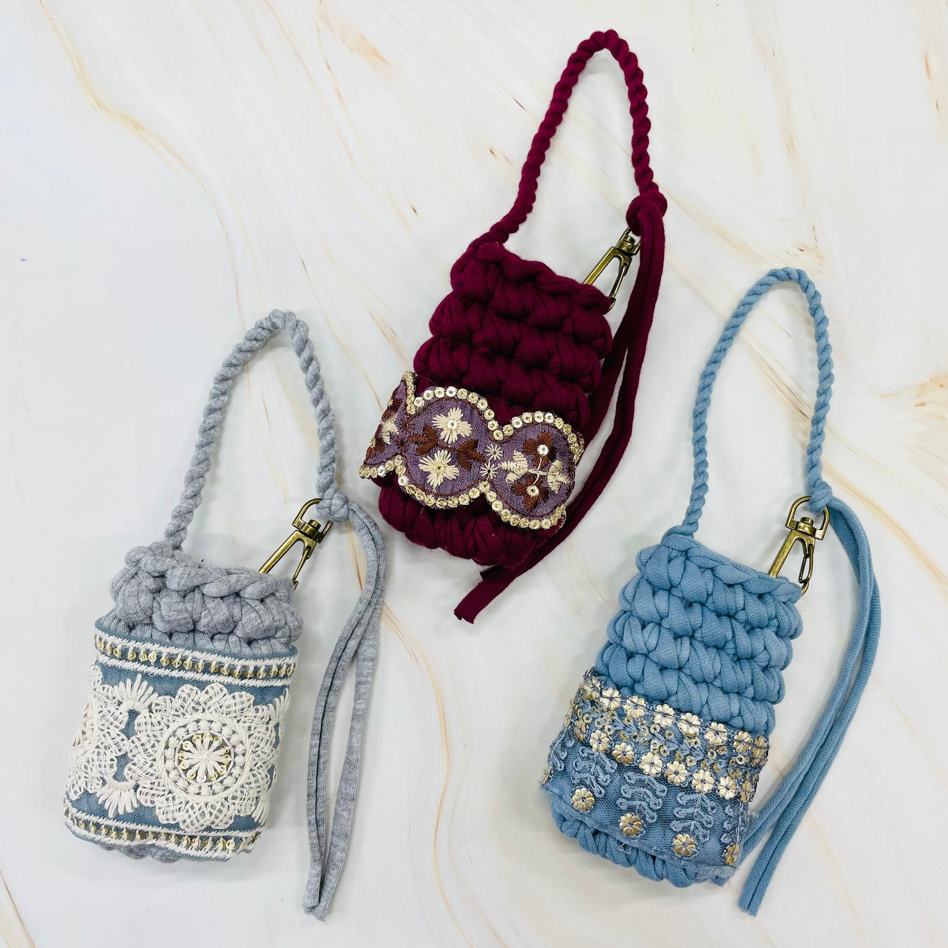 (アップサイクルの糸とは古着を切って紐状にしたものです)