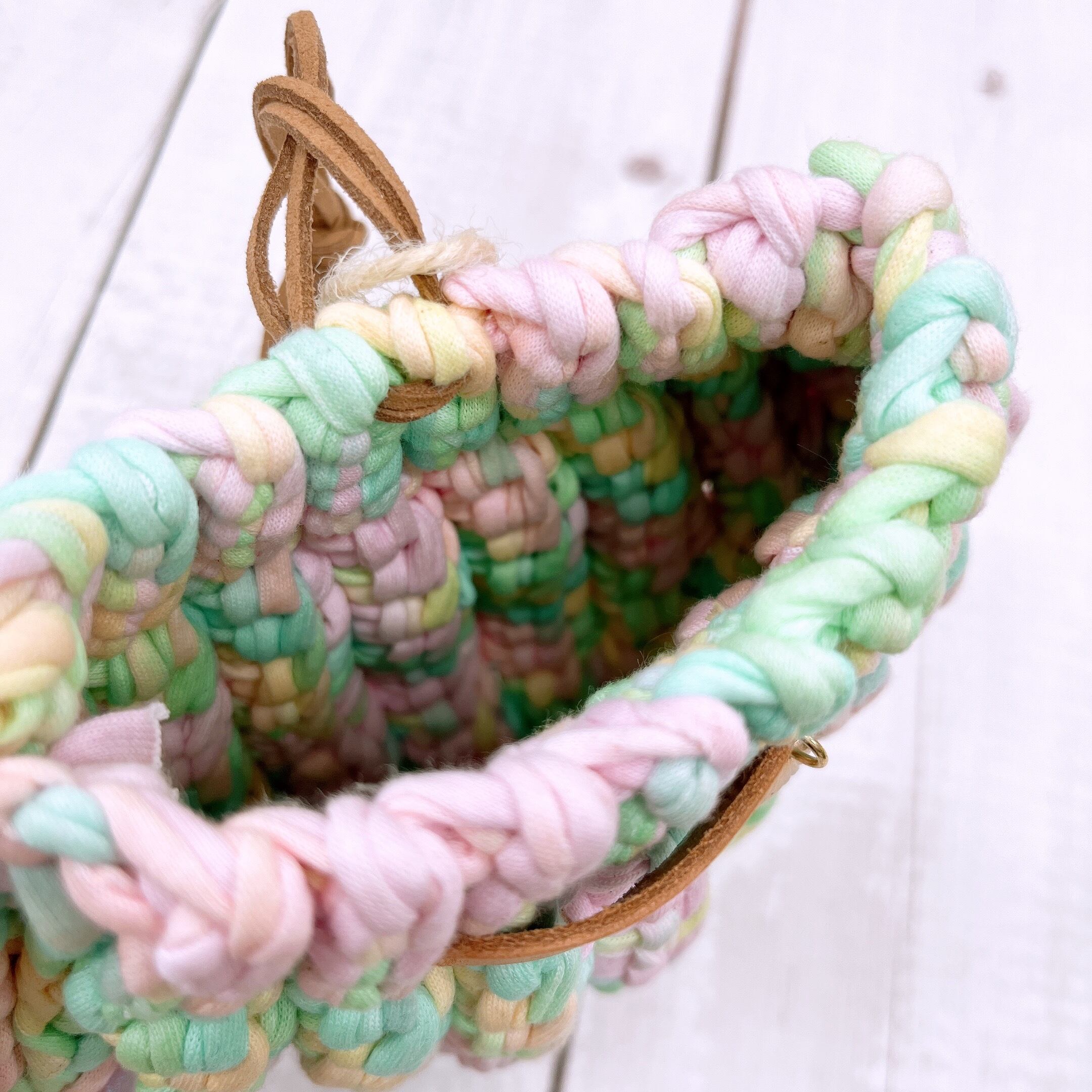 (アップサイクルの糸とは古着を切って紐状にしたものです)